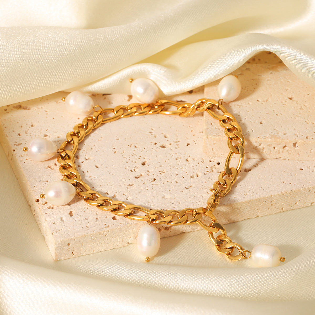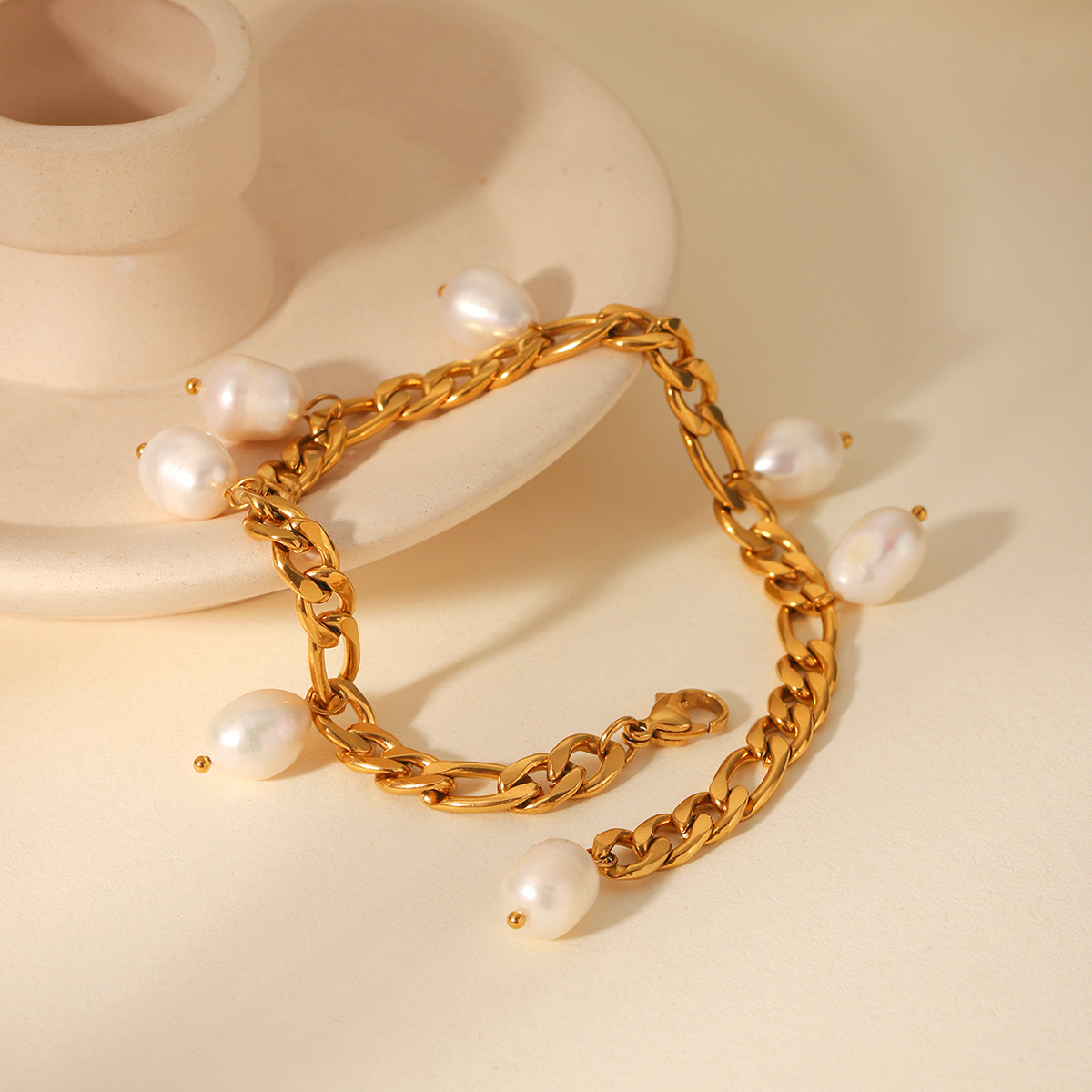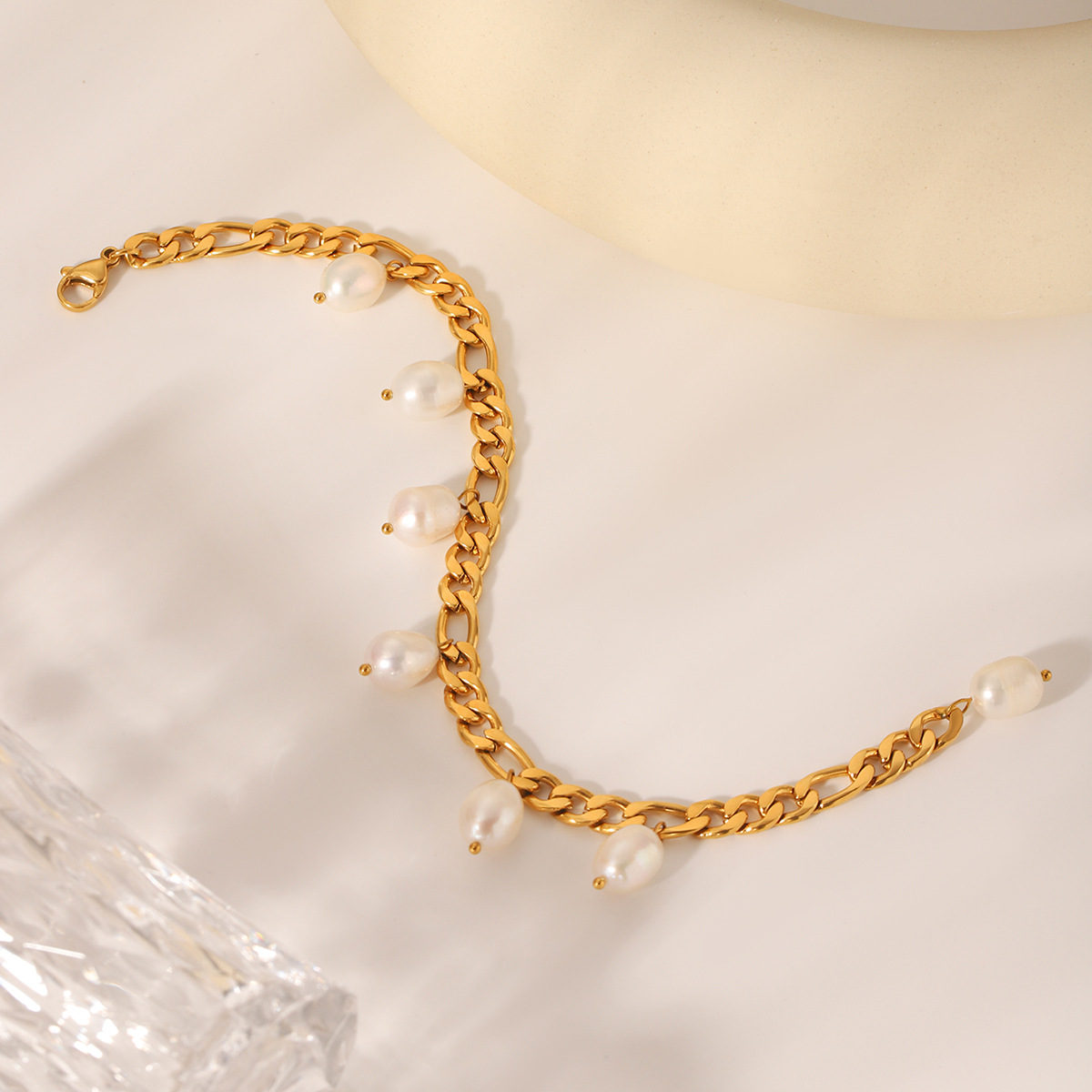 Ins-style Natural Freshwater Pearl Anklet, Stainless Steel Figaro Chain, 18K Gold-plated Anklet, Titanium Steel, Non-fading