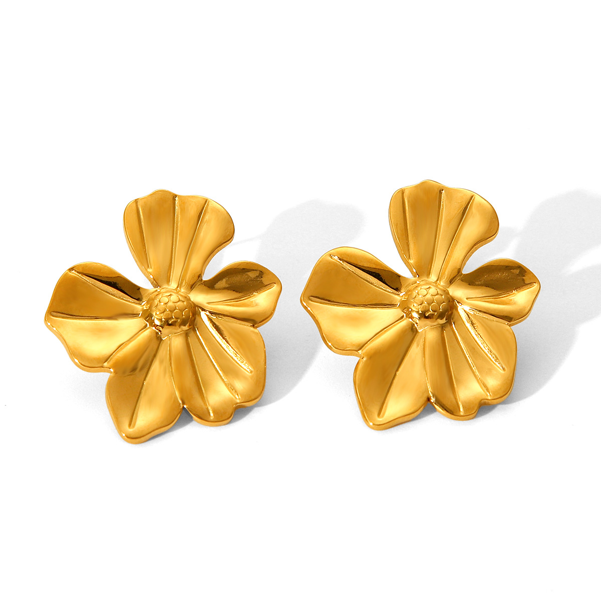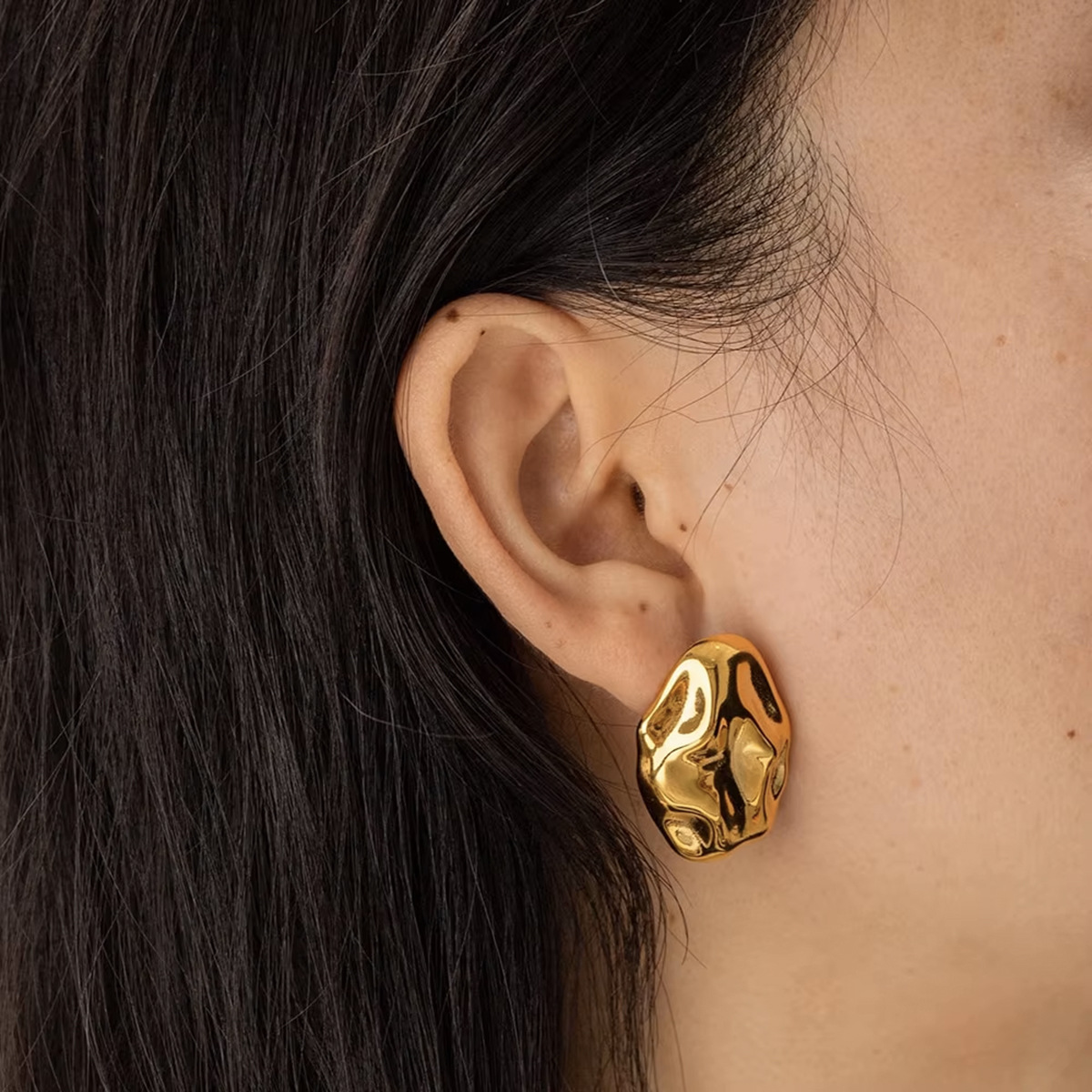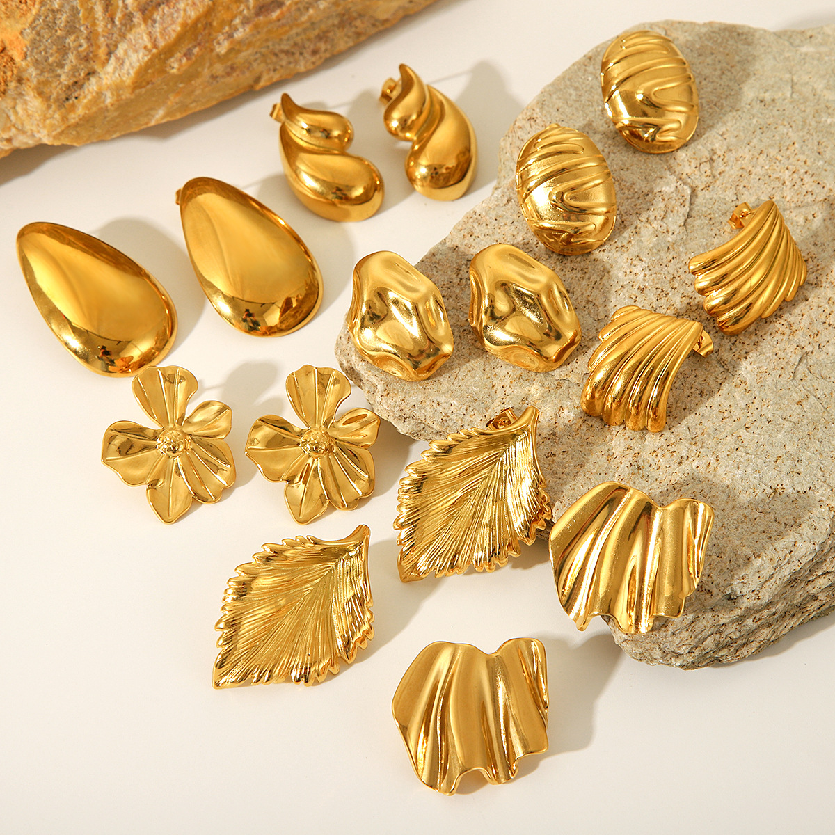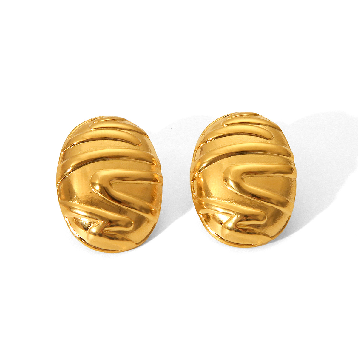 INS-style Popular Pleated Texture Geometric Titanium Steel Earrings, Non-fading, High-end Stainless Steel Earrings for Women
