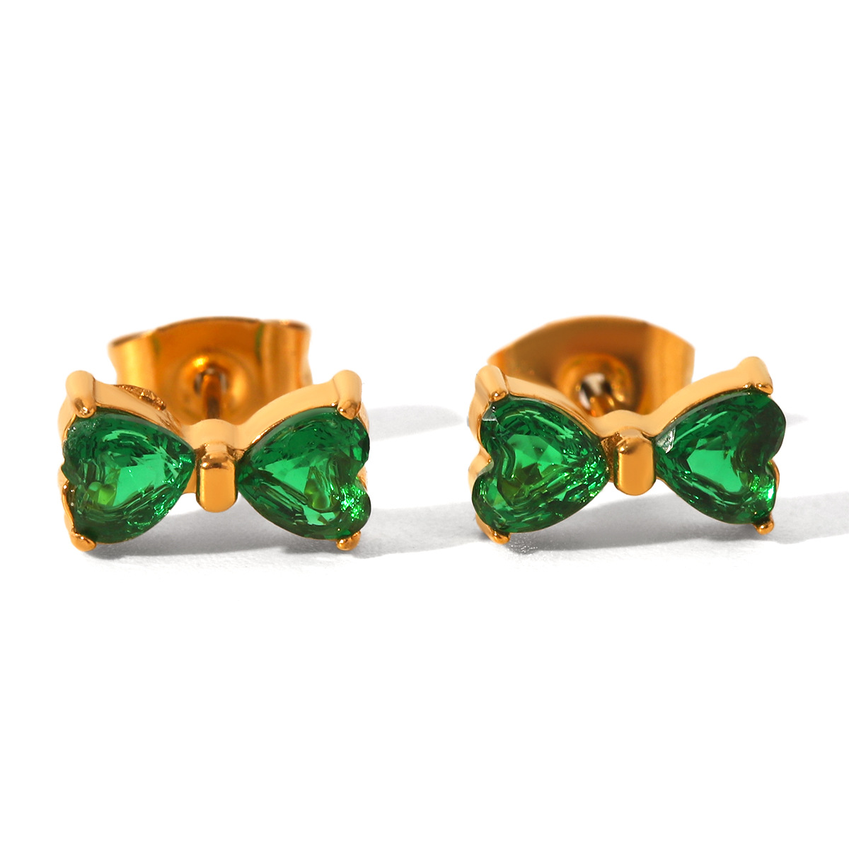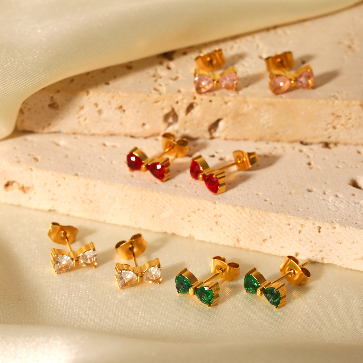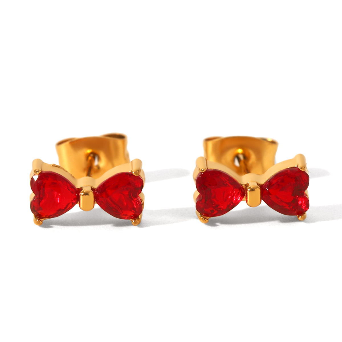 INS-style Stainless Steel Bowknot Earrings with Zircon Studs for Women, Non-fading Titanium Steel, 18K Gold-plated Earrings