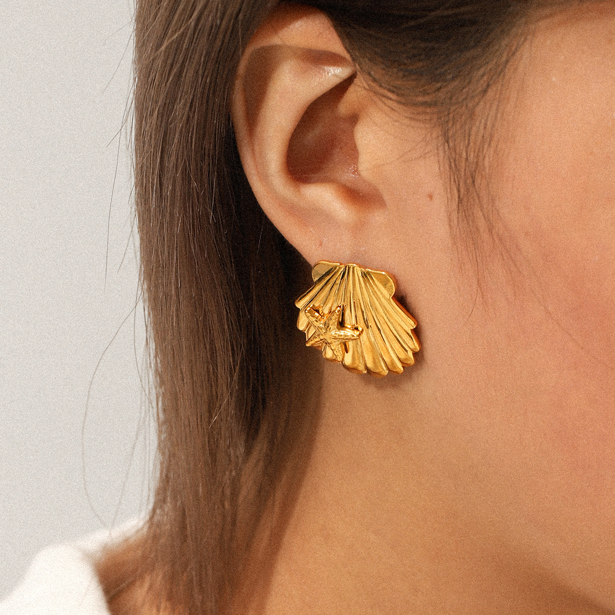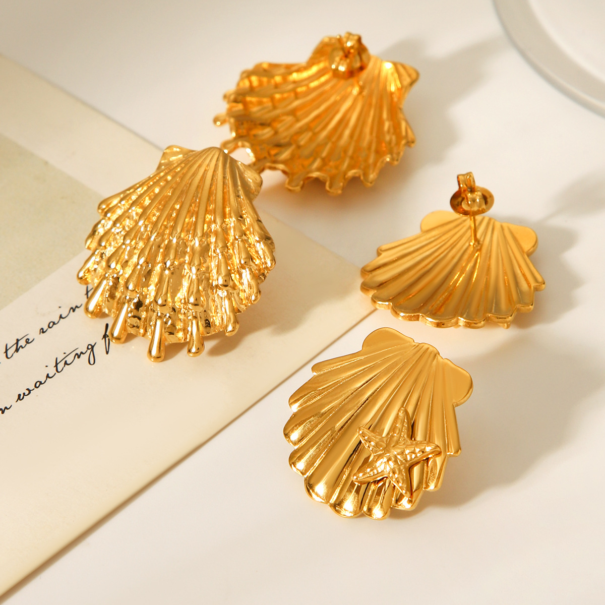 INS Style Summer Beach Jewelry, 18k Gold Stainless Steel Shell Earrings, Starfish Earrings, Titanium Steel Jewelry