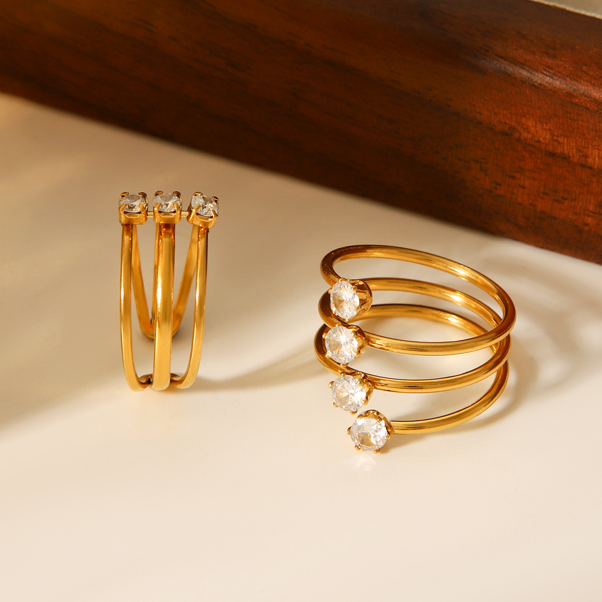 INS Style Three-layer Stainless Steel Ring with Zircon Inlay, Light Luxury and Versatile Titanium Steel Open Ring