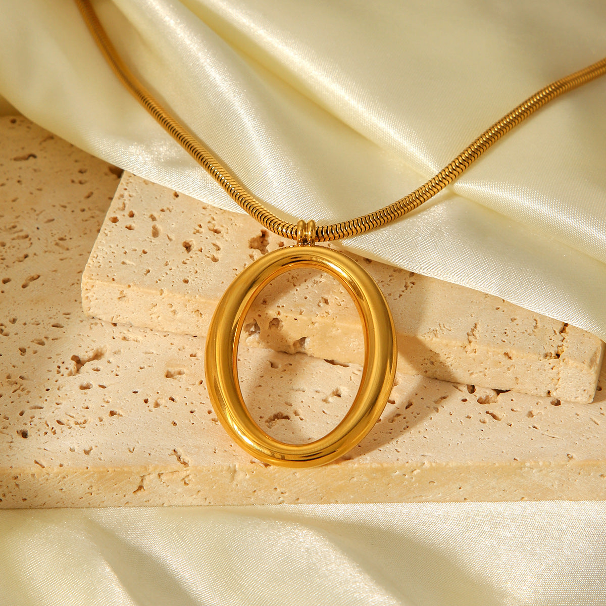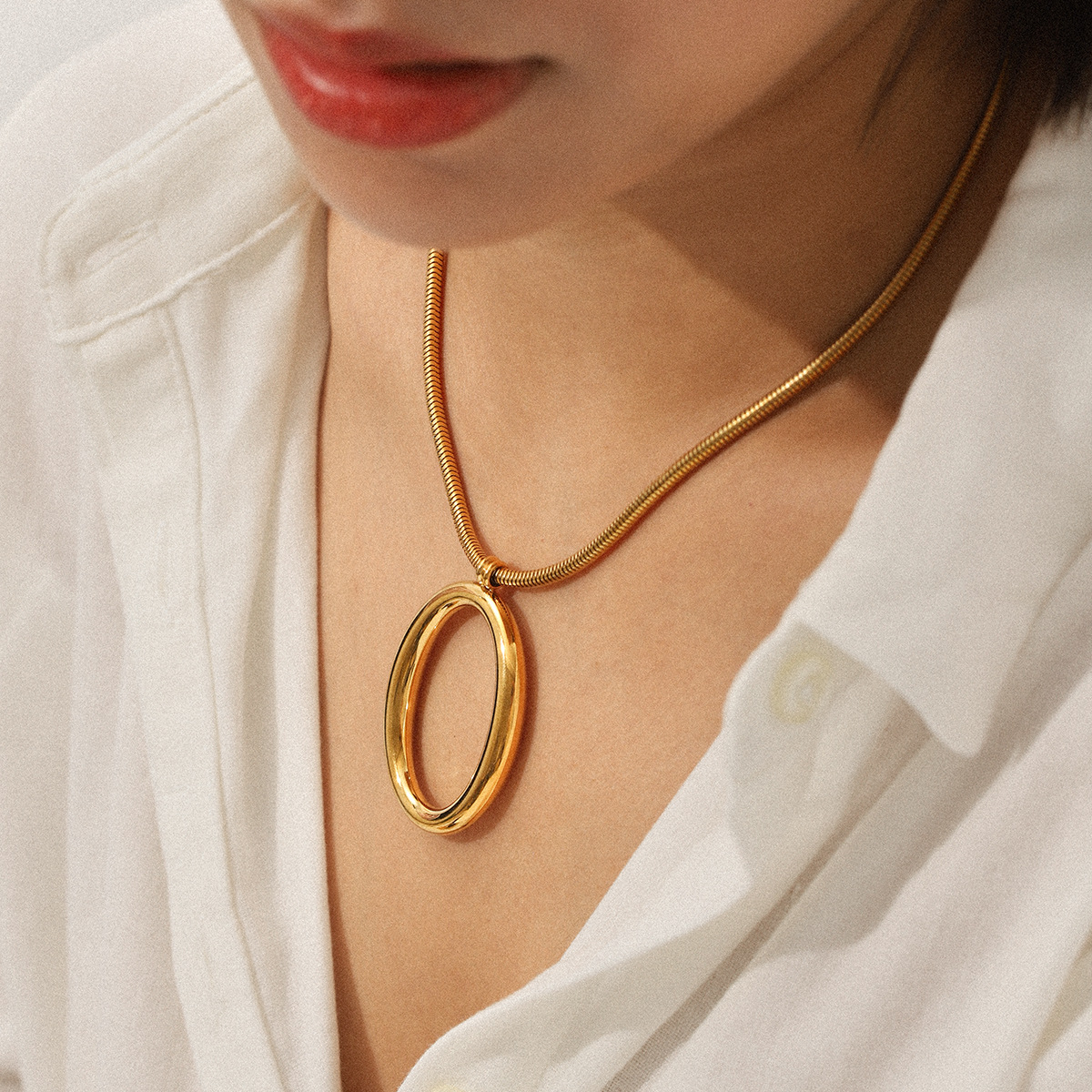 Personalized Light Luxury Snake Bone Chain Hollow Oval Pendant Stainless Steel Necklace Simple and High-end Collar Chain Necklace