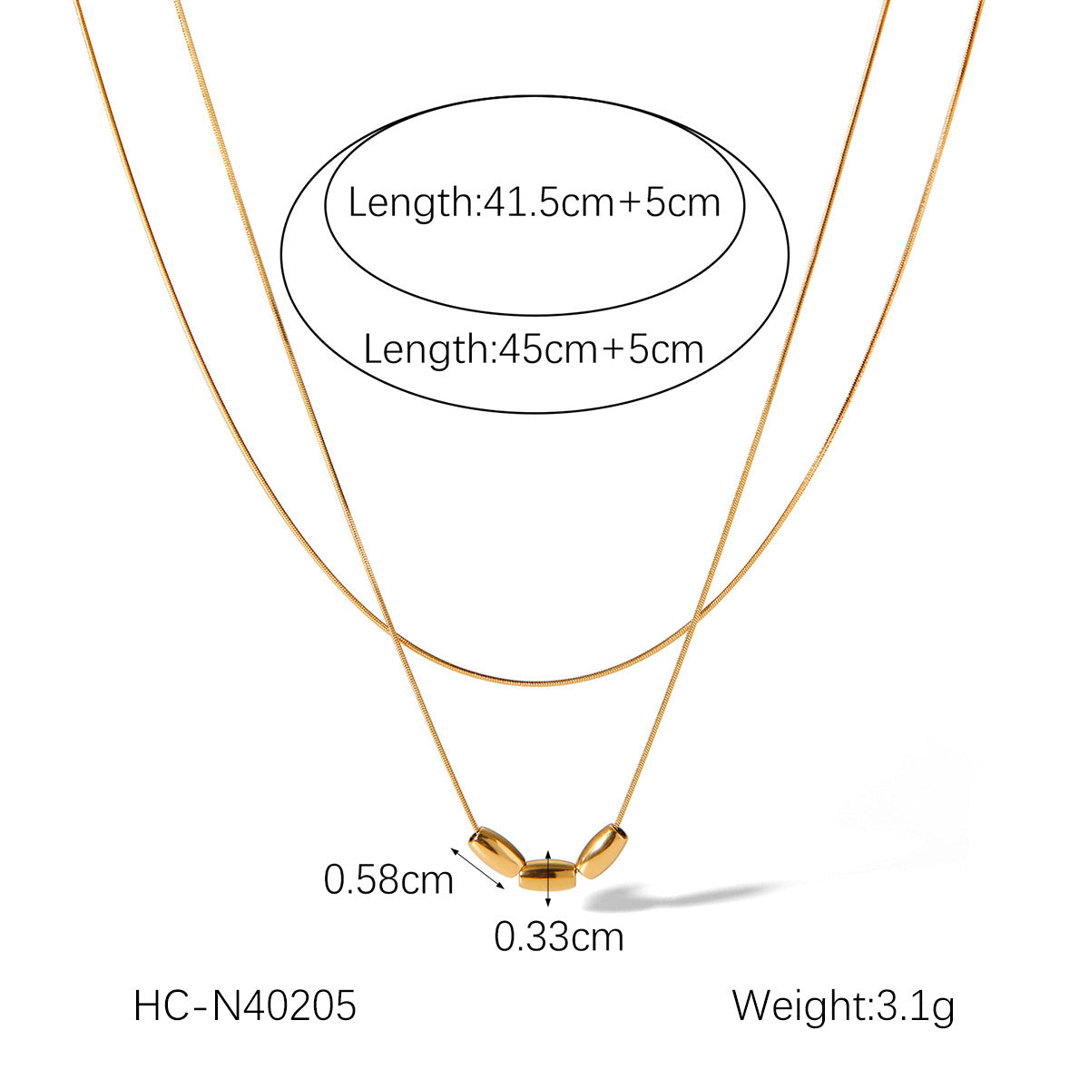 Simple 18k gold double-layer stackable necklace for women, stainless steel, cool style, beaded snake bone chain, does not fade