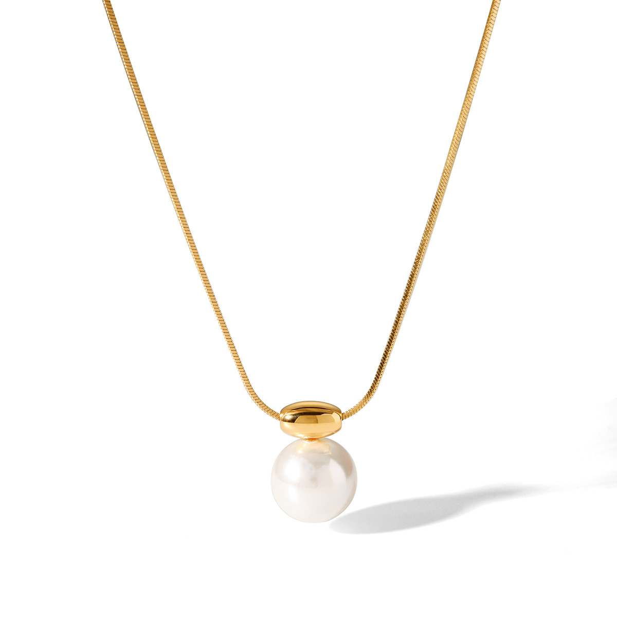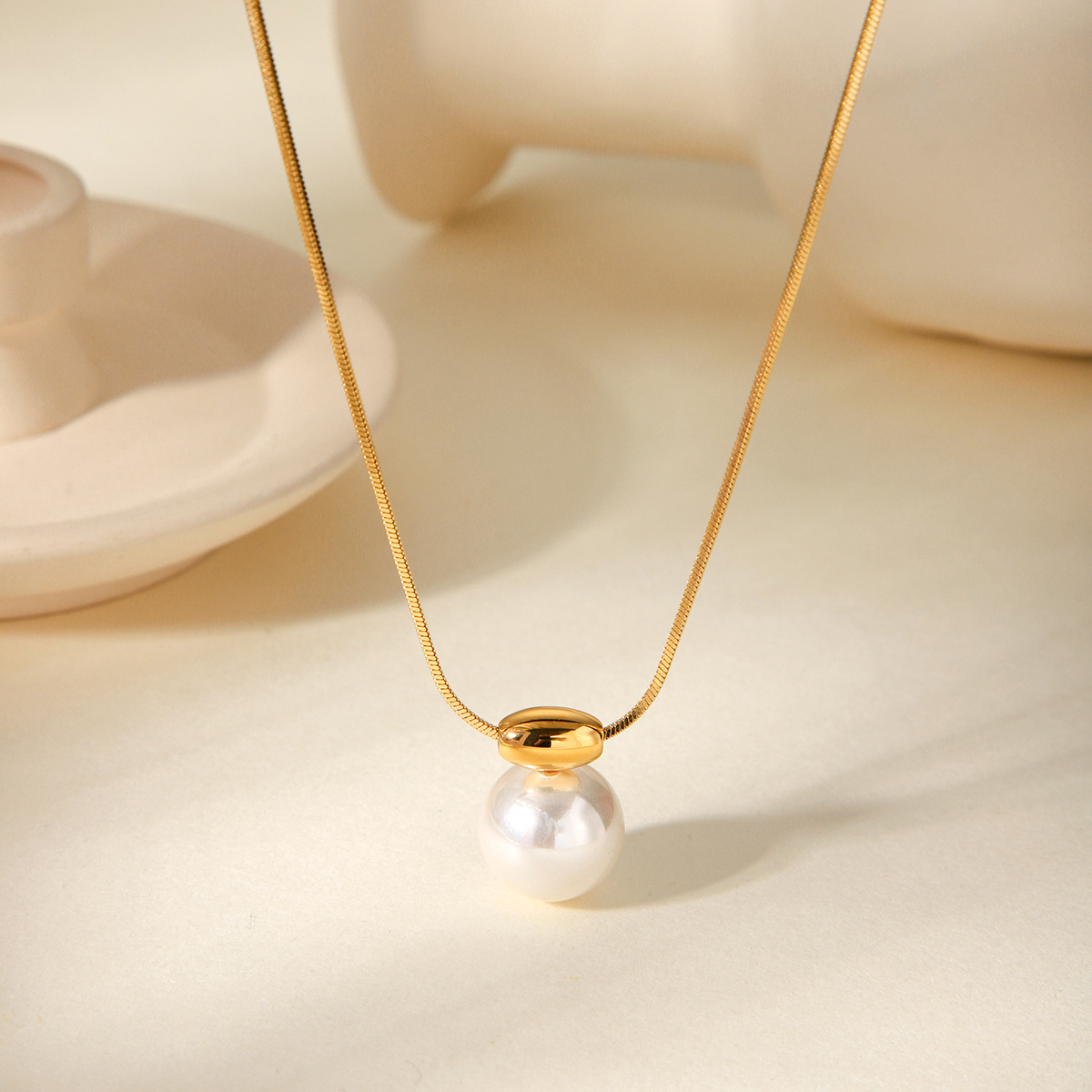 Simple and versatile golden bean necklace with stainless steel French style small fragrance pearl pendant jewelry