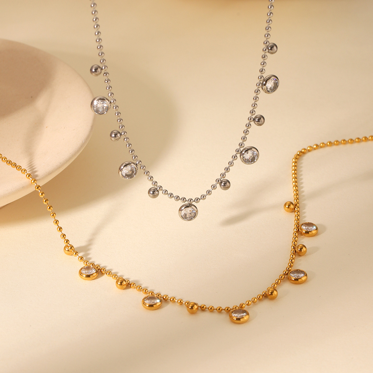 Stainless Steel Bead Chain Tassel Zircon Necklace Women's High-end Necklace Accessory Non-fading Collar Chain Titanium Steel Jewelry