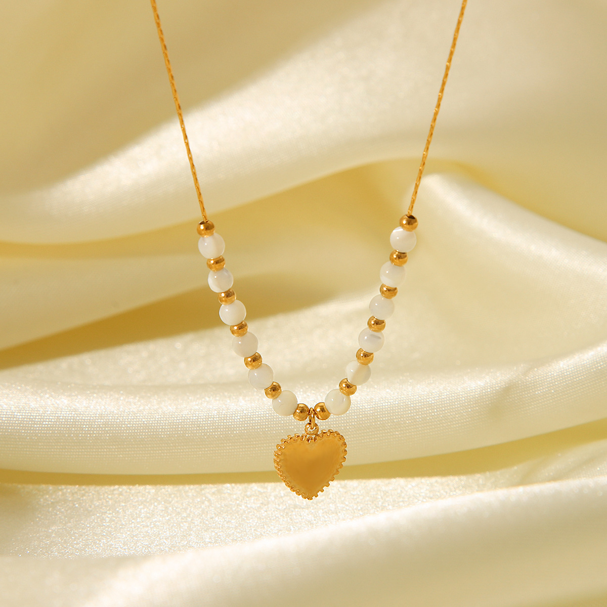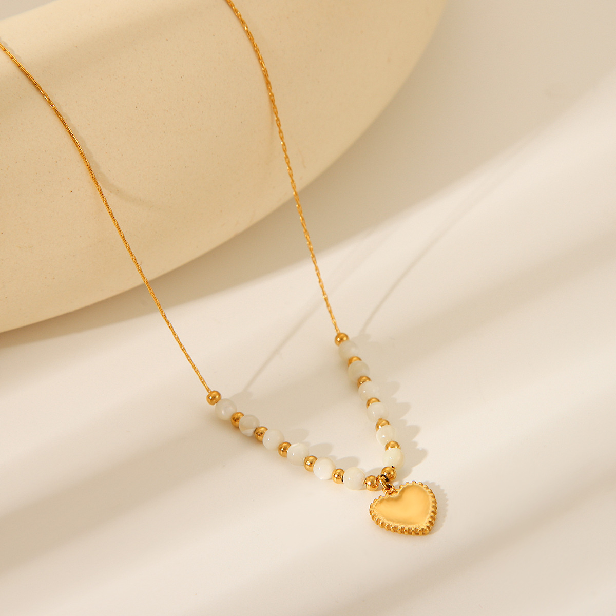 Stainless Steel Bead Heart Pendant Necklace Fashionable Temperament Easy To Match Titanium Steel Necklace Does Not Fade