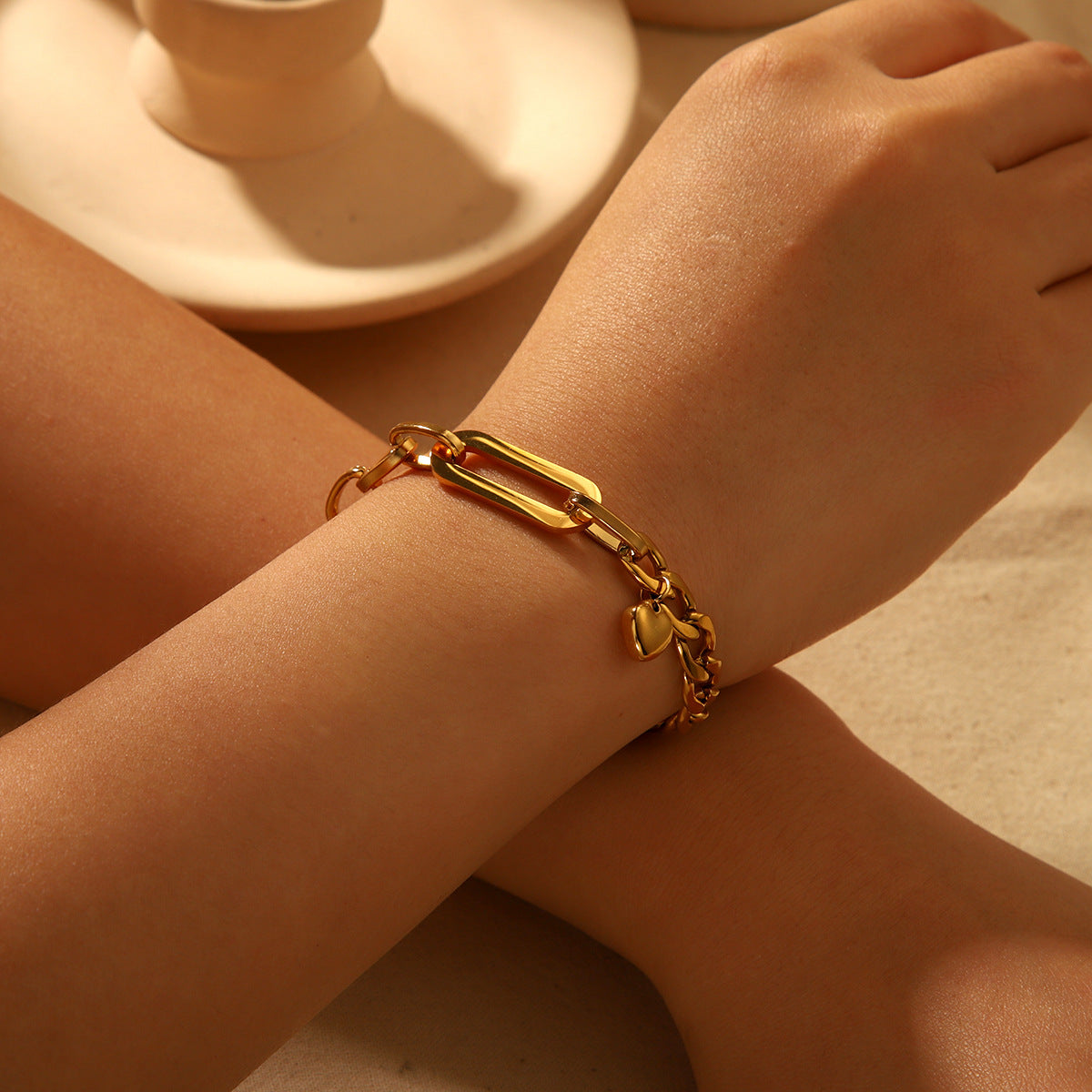Stainless steel Cuban chain oval chain heart pendant bracelet women's 18K gold titanium steel jewelry
