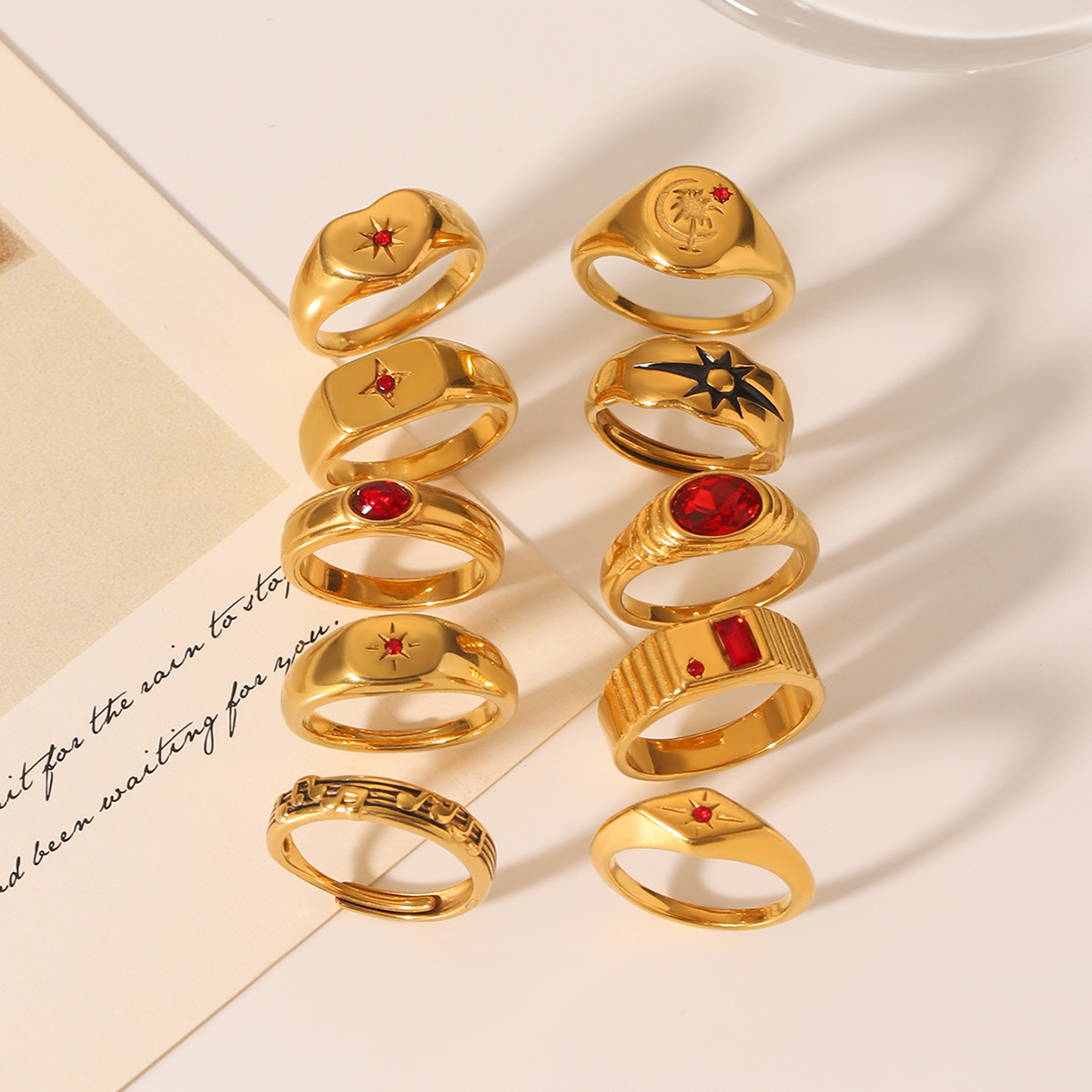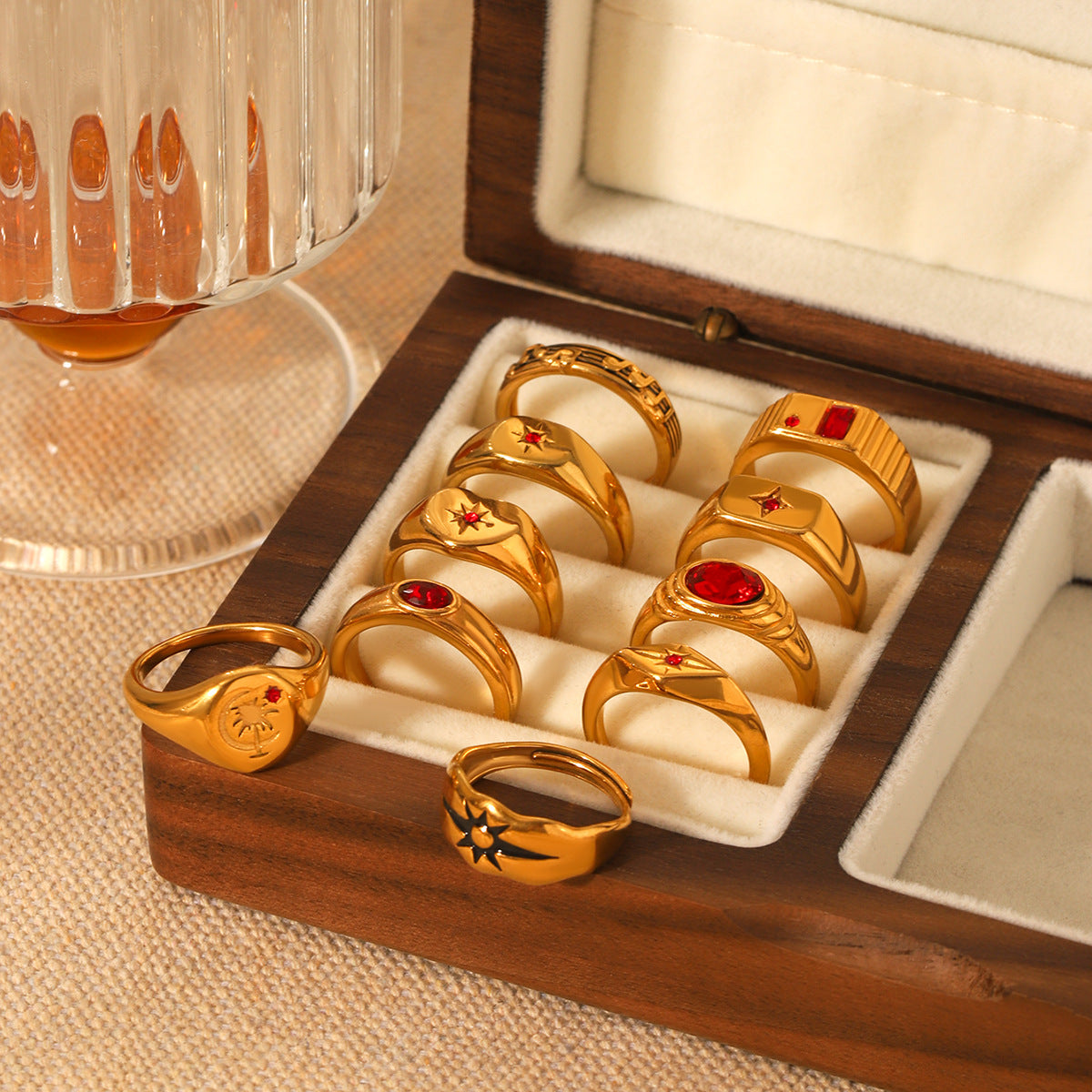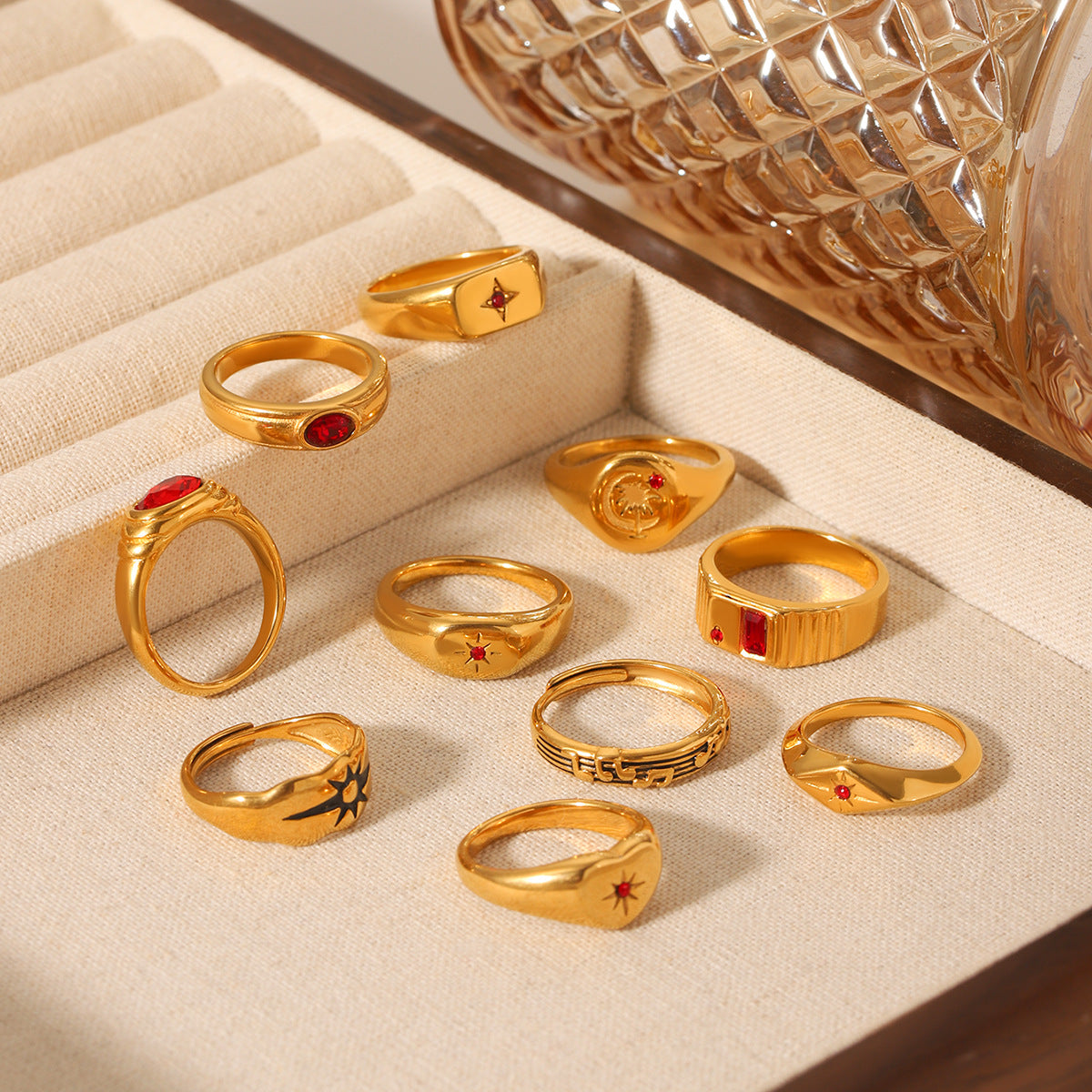 Stainless Steel Diamond-encrusted Ring, Titanium Steel, Non-fading, Eight-pointed Star Design, Women's Temperament, Versatile Jewelry