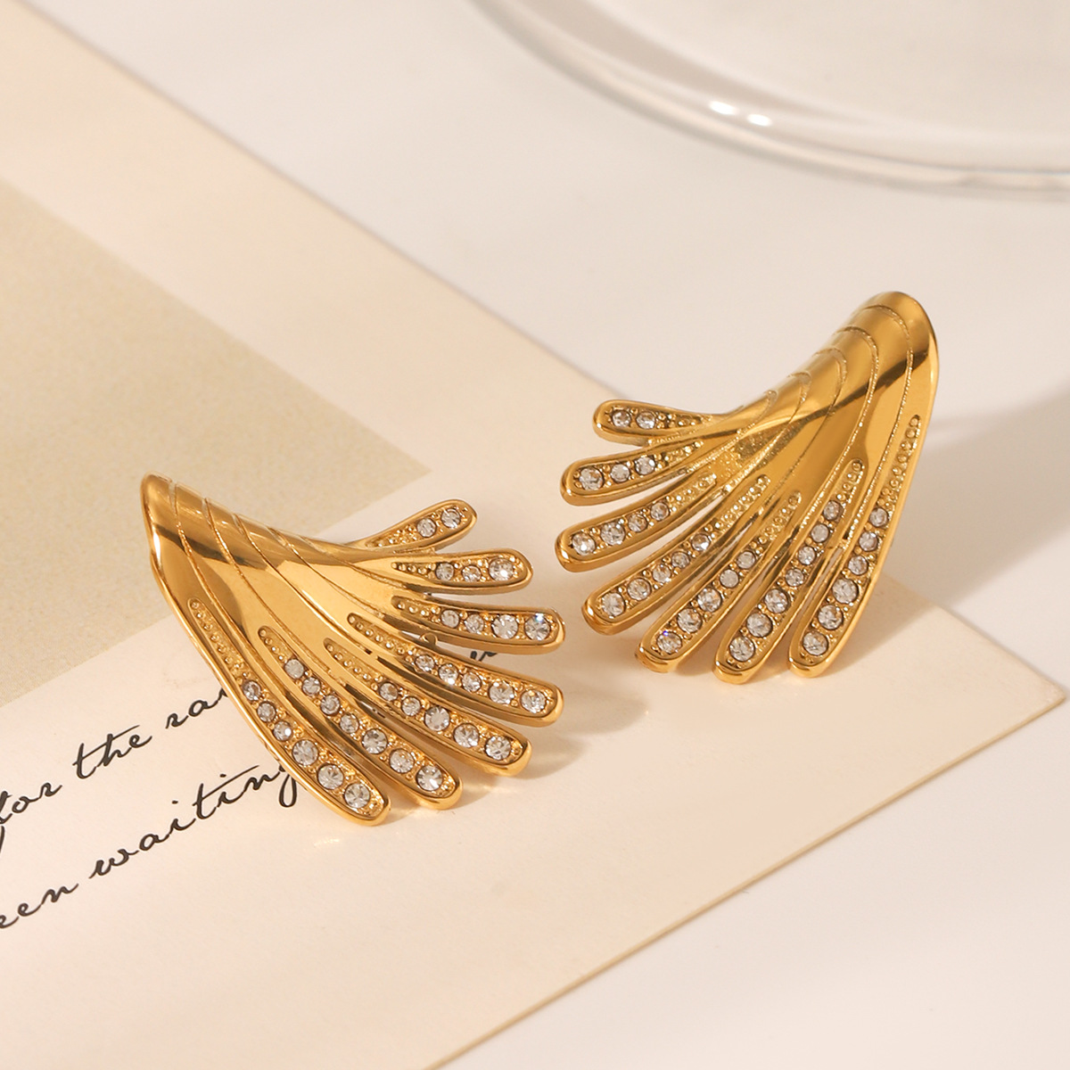 Stainless Steel Diamond-encrusted Wing Earrings with A Design Sense, Titanium Steel Earrings for Women, High-end Ear Jewelry