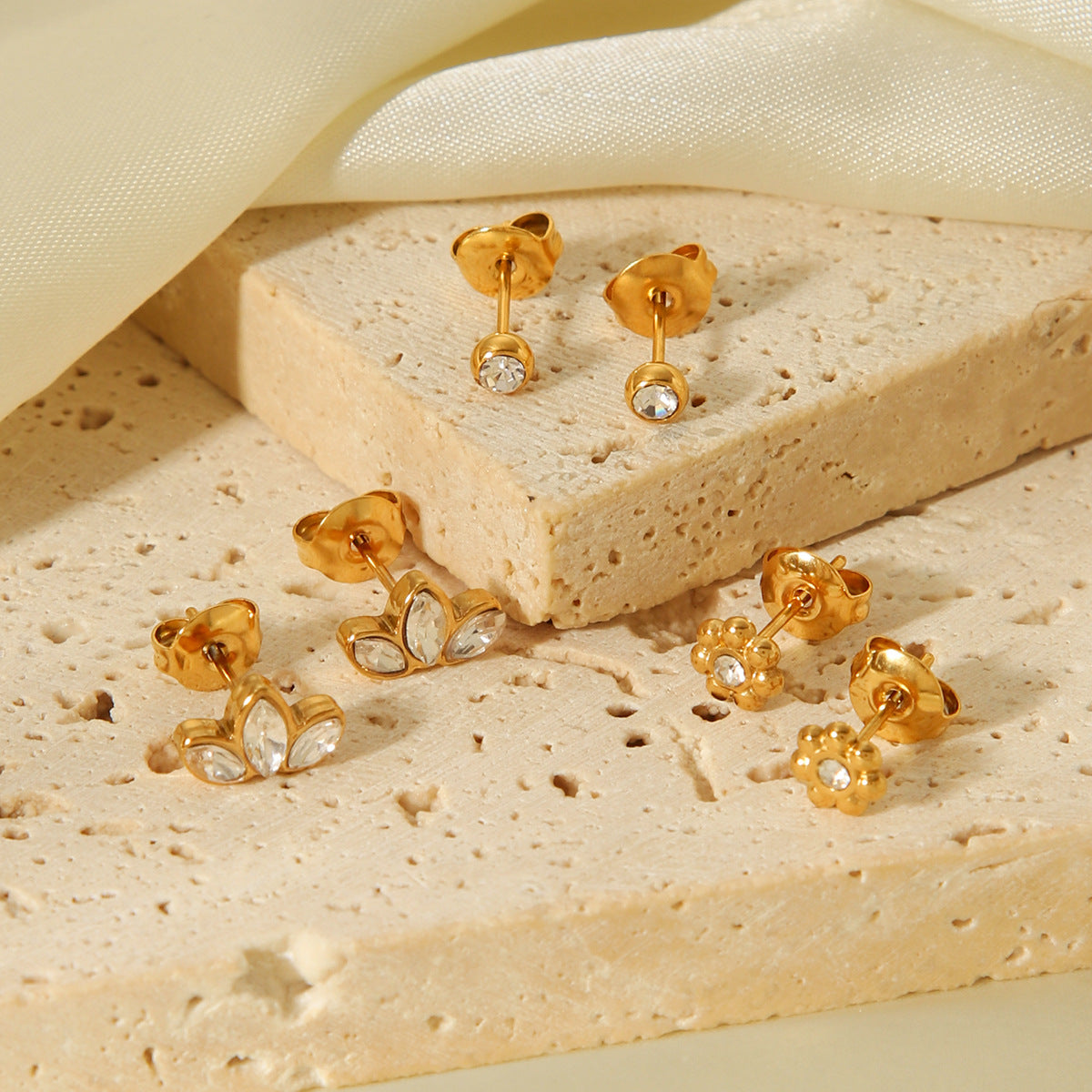 Stainless Steel Earrings, Light Luxury Niche Style, Three Pairs of Zircon Stud Earrings for Women, Designed with A Sense of Design, Titanium Steel Earrings