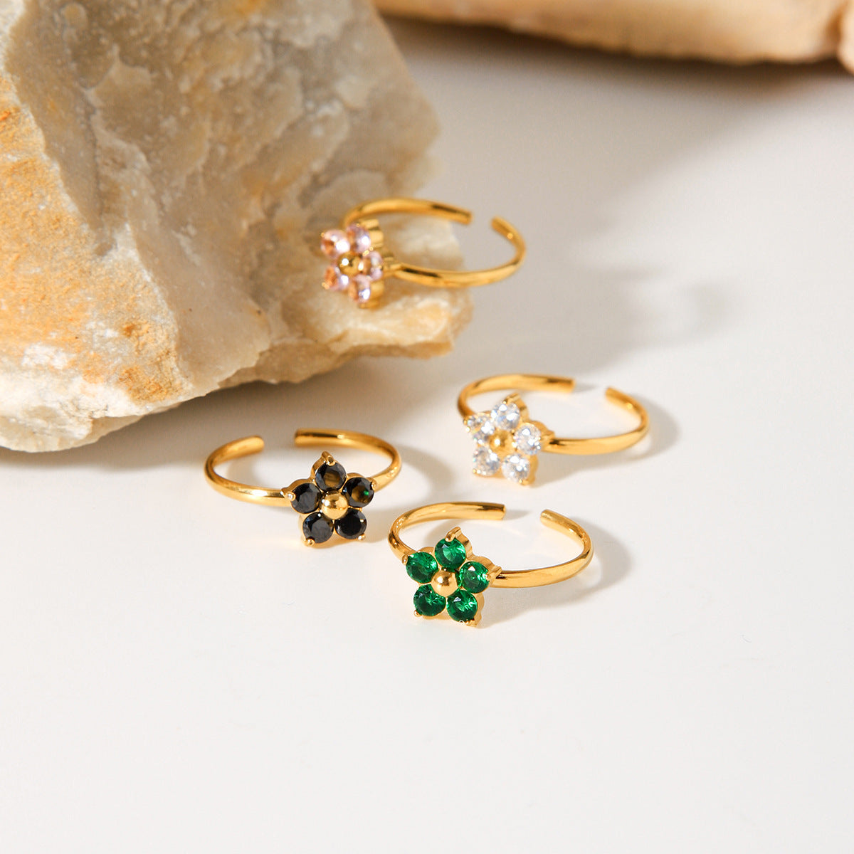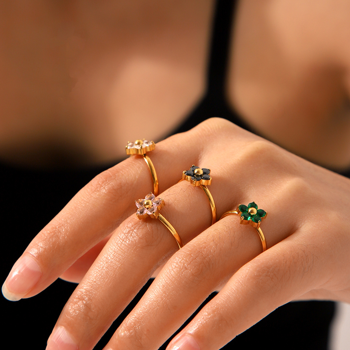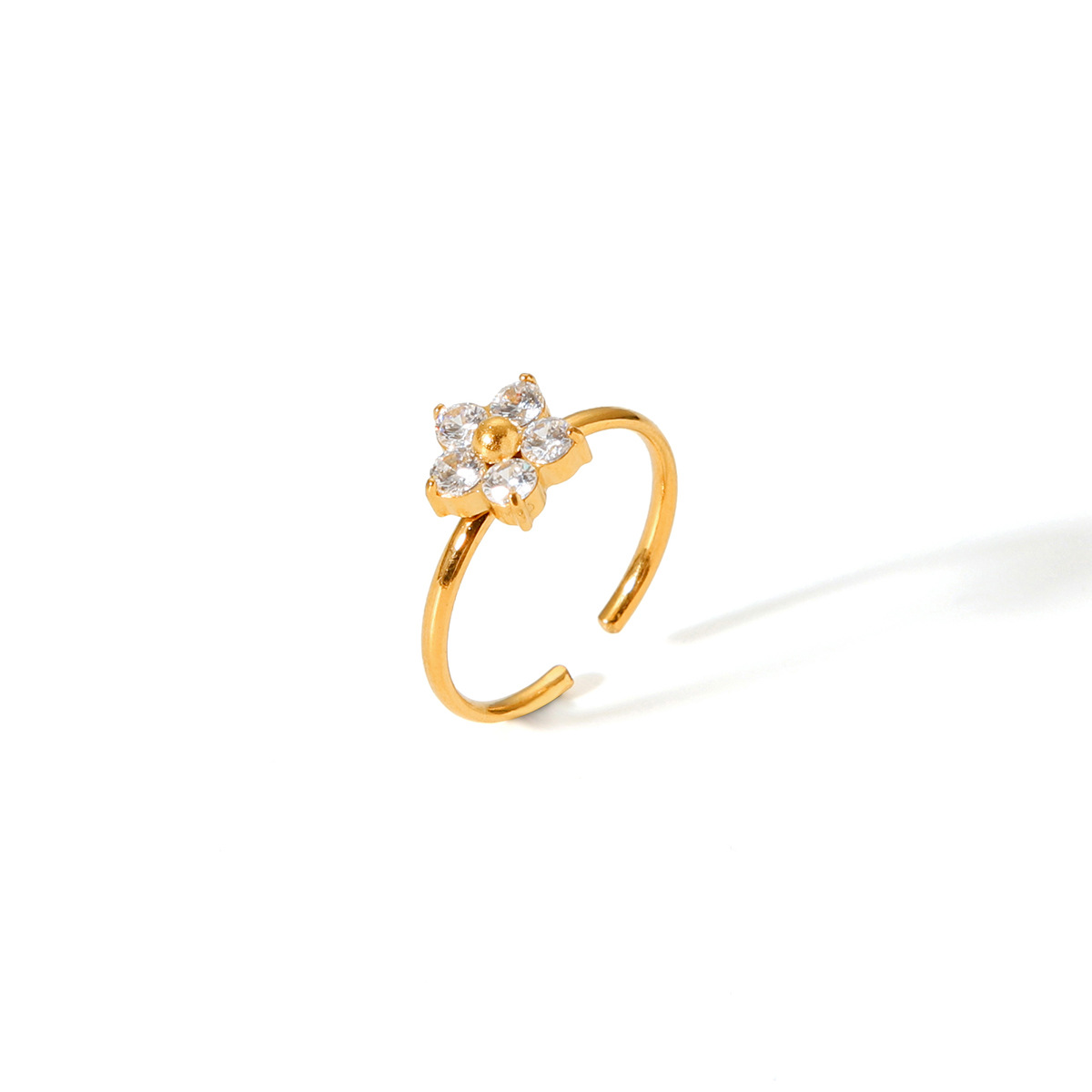 Stainless Steel Flower Inlaid Zircon Ring for Women, French Style, Light Luxury, High-end Feel, Titanium Steel Opening Ring