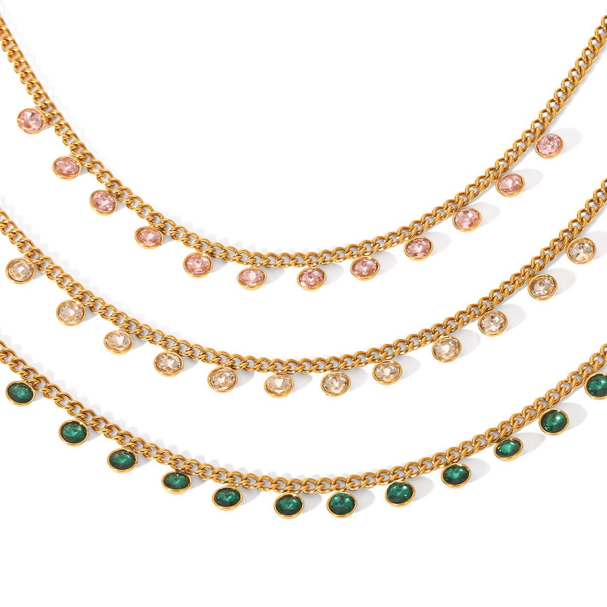 Stainless Steel Fringed Necklace, Round Zircon Necklace, High-end Personalized Style Clavicle Chain, Titanium Steel Necklace Accessory