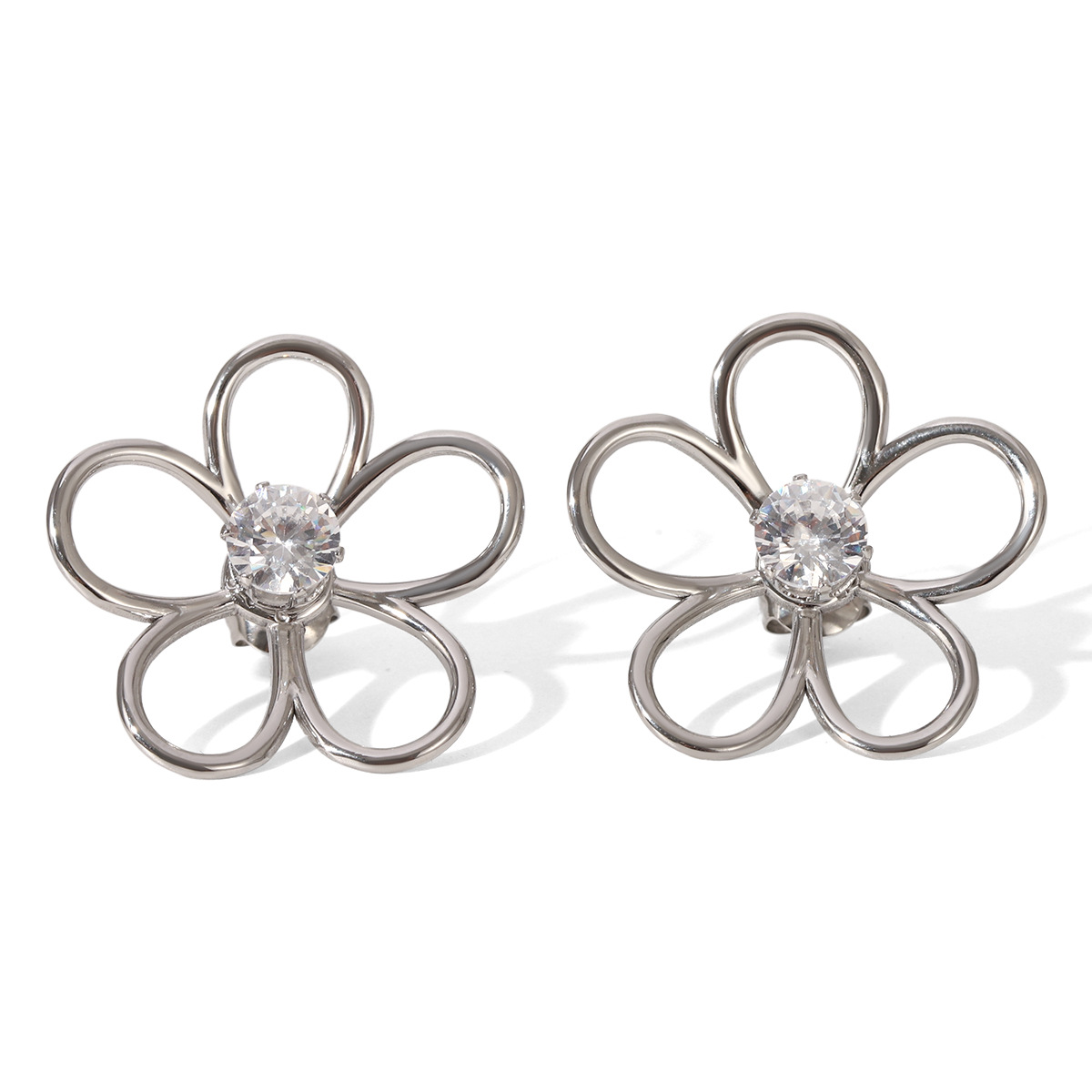 Stainless Steel Hollow Flower Earrings with Zircon Earrings Design Sense Earrings Titanium Steel Jewelry