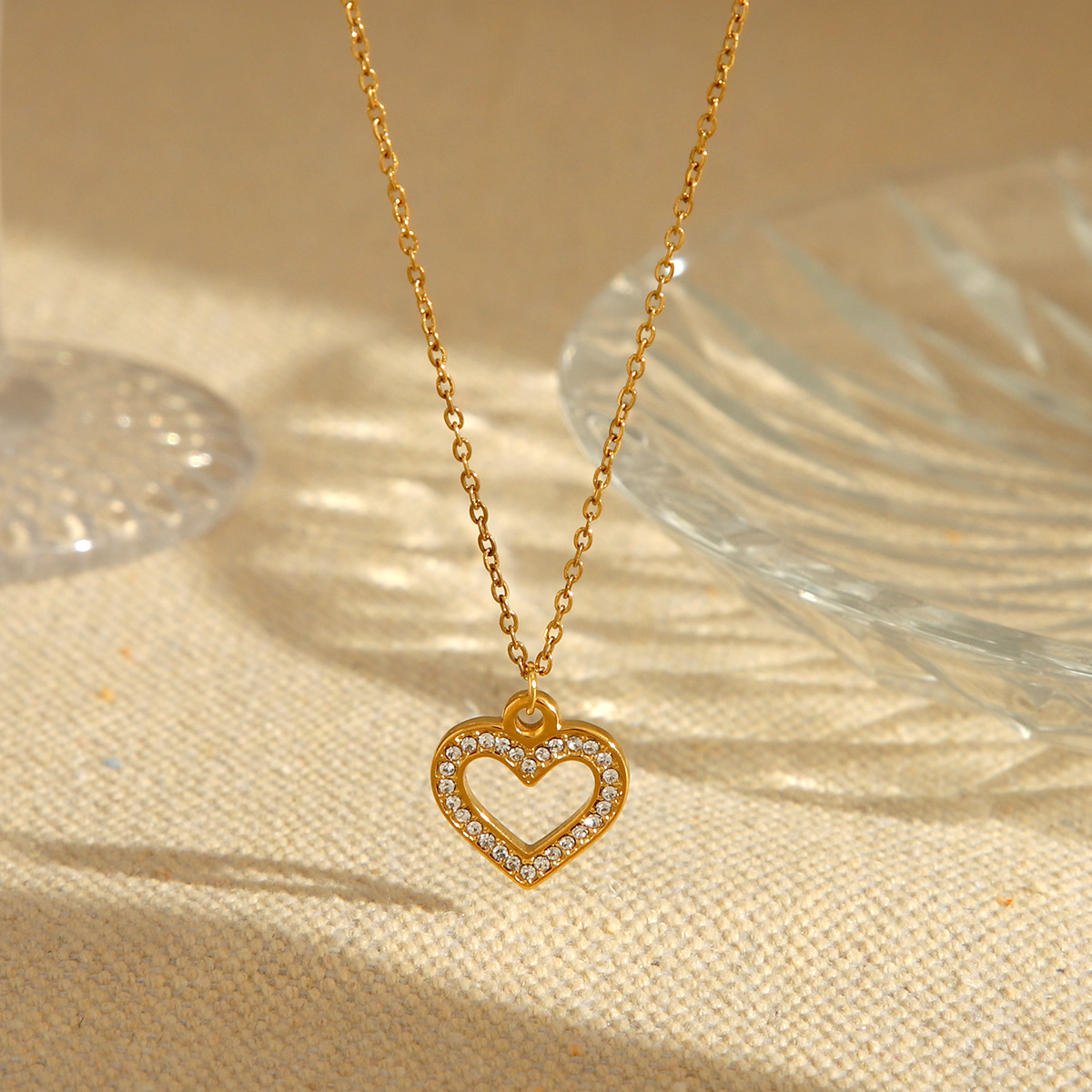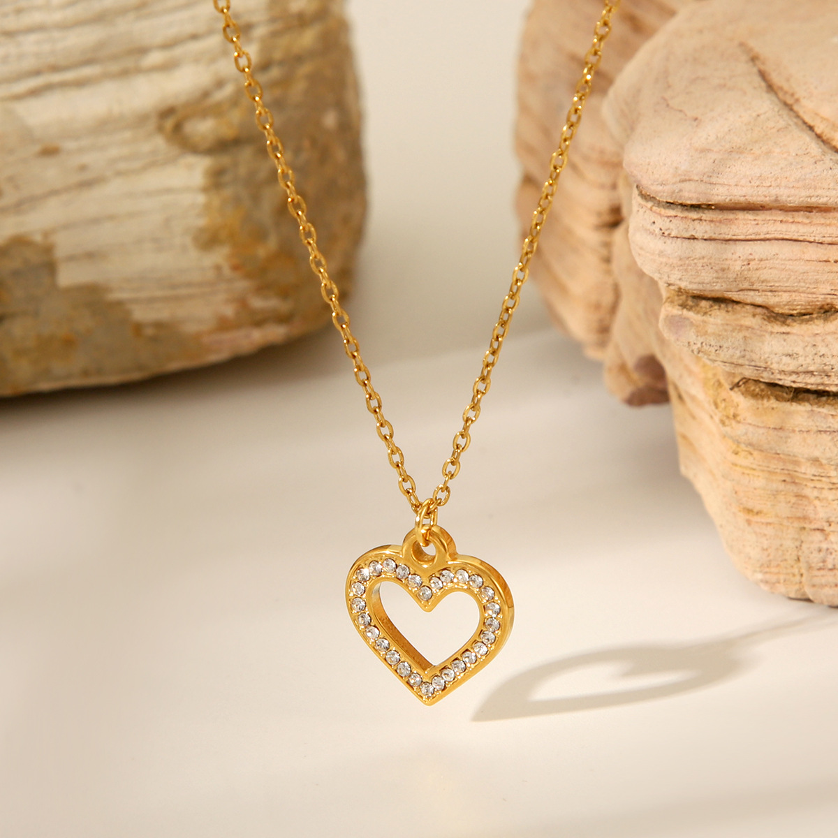 Stainless steel hollow-out heart-shaped zircon pendant necklace for women, light luxury, versatile, titanium steel necklace, does not fade