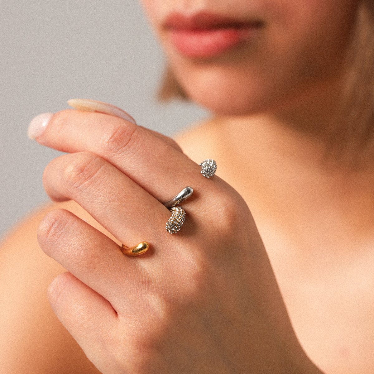 Stainless Steel Open Ring with Diamond Inlay, Women's Non-fading Ring, Light Luxury and High-end Hand Jewelry, Titanium Steel Jewelry