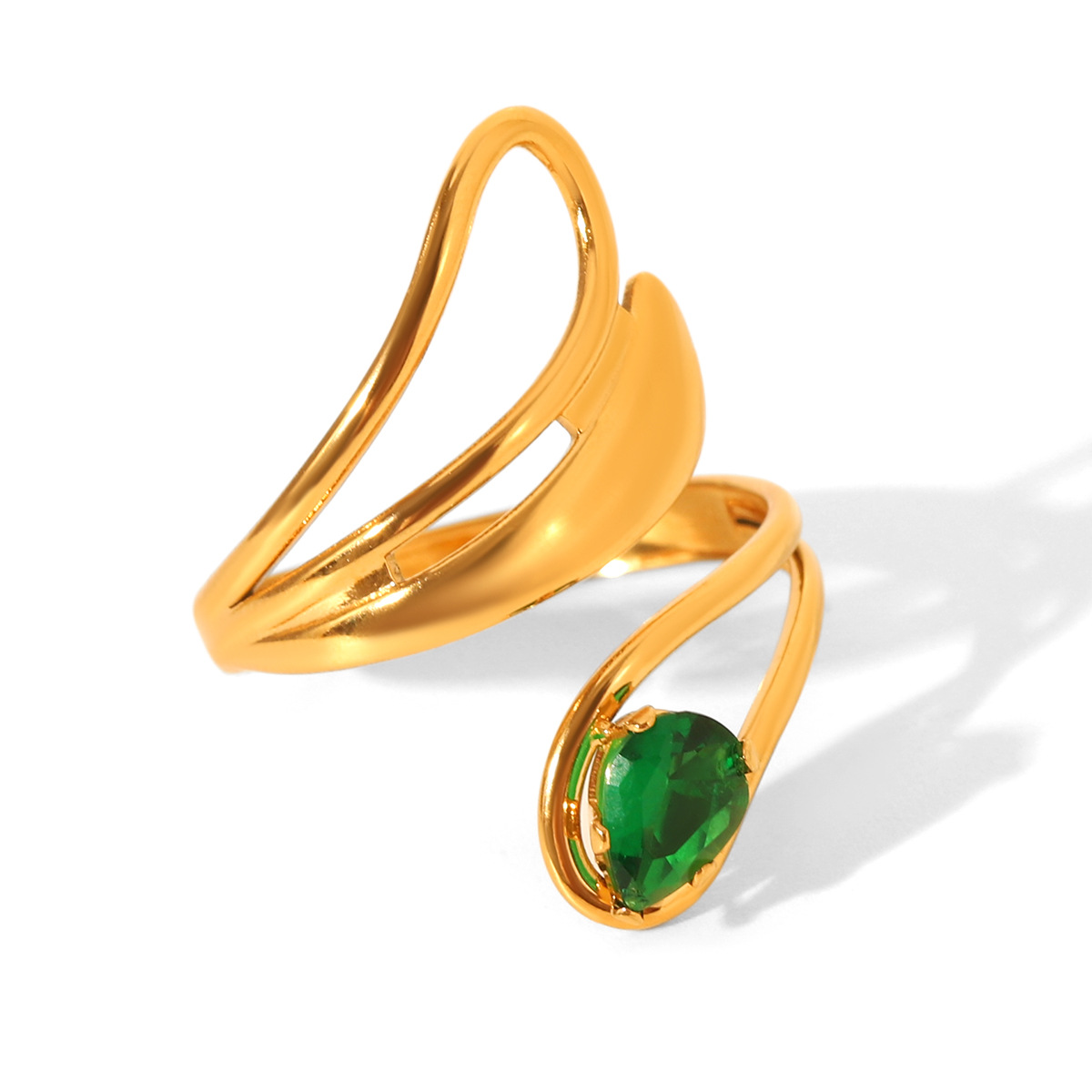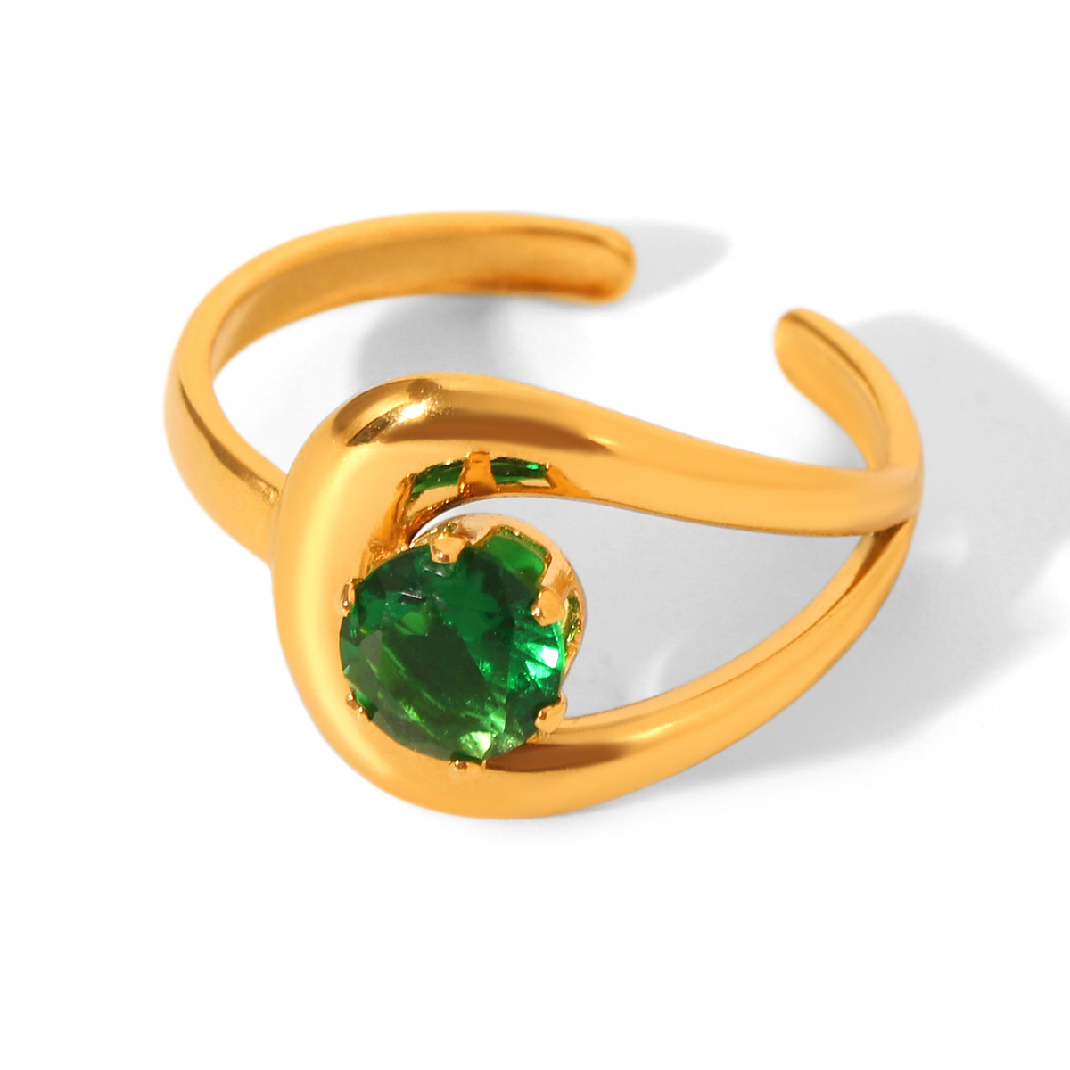 Stainless Steel Ring with Green Zircon Inlay for Women, Non-fading Titanium Steel Ring, Light Luxury and High-end Hand Jewelry