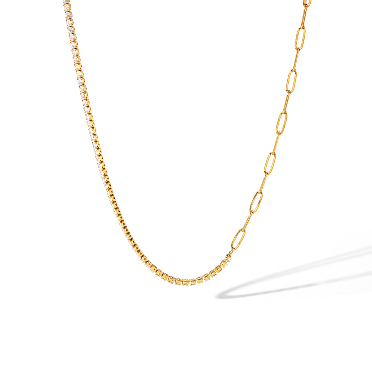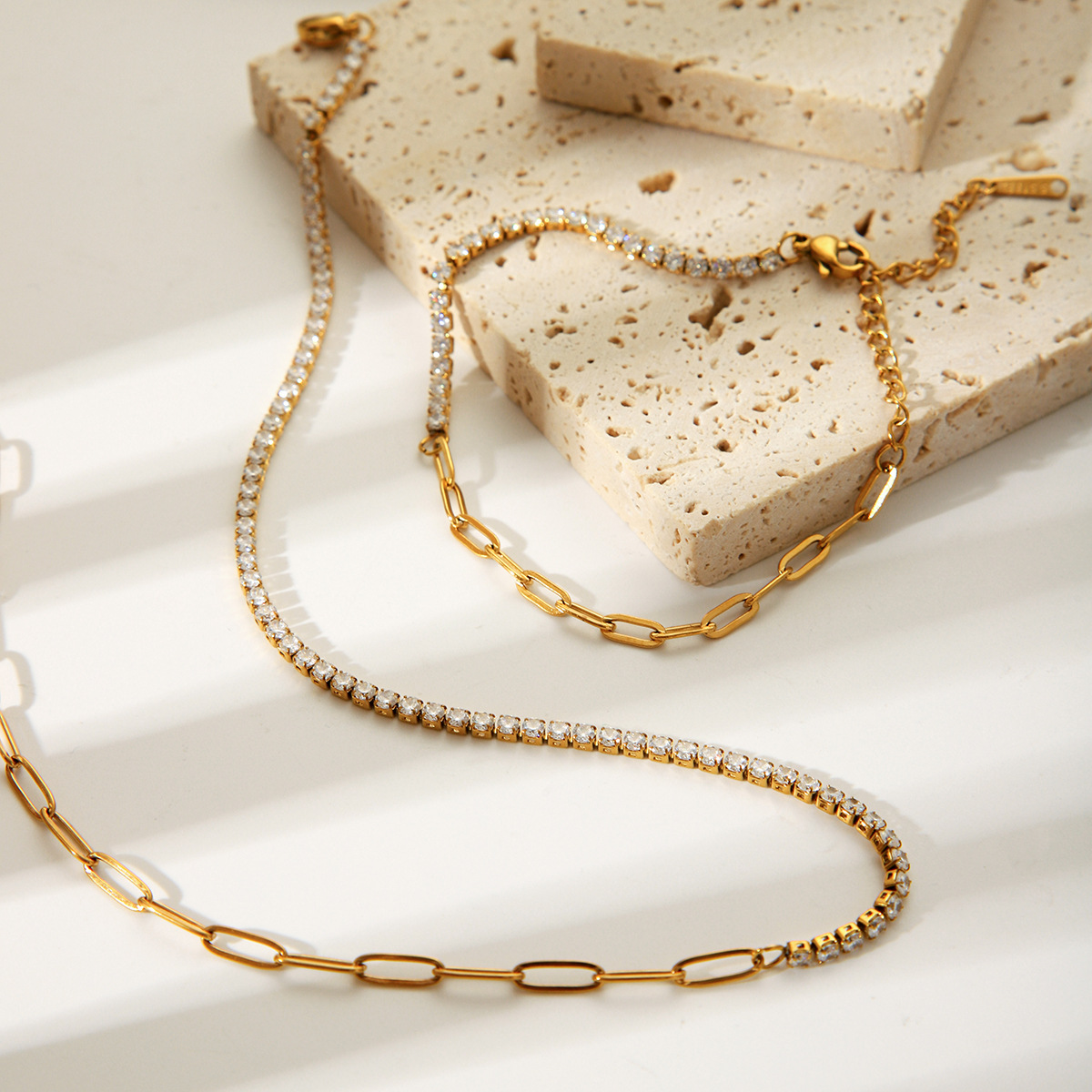 Stainless Steel Zircon Bracelet with INS Style, Light Luxury and High-end Feel, 18k Gold Titanium Steel Claw Chain Necklace, Does Not Fade