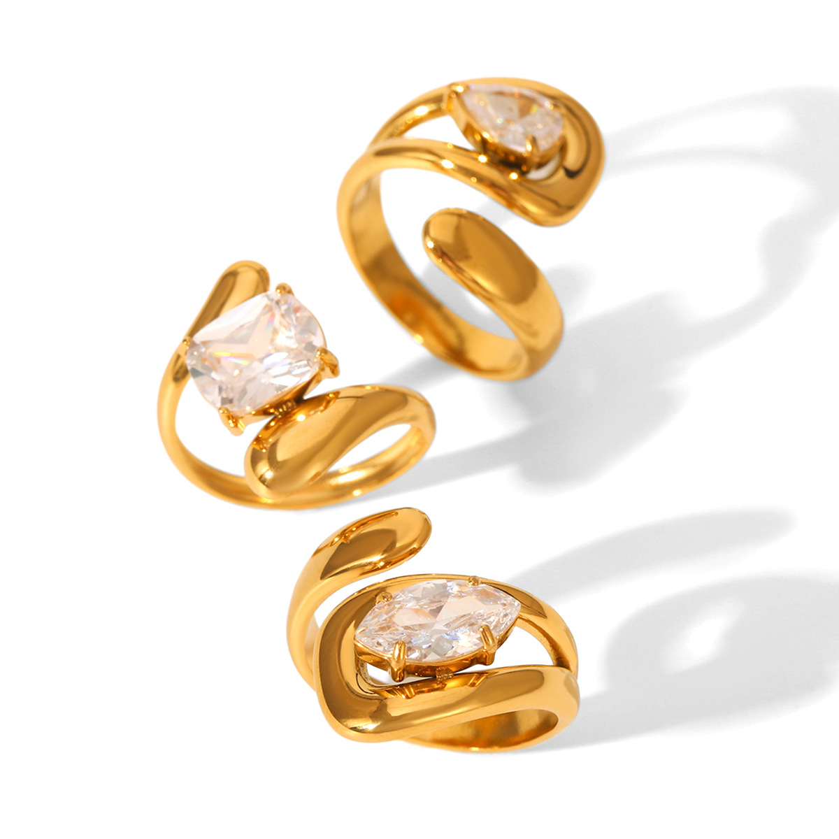 Stainless Steel Zircon-inlaid Ring, High-end and Light Luxury, Open-finger Ring, Niche Titanium Steel Jewelry