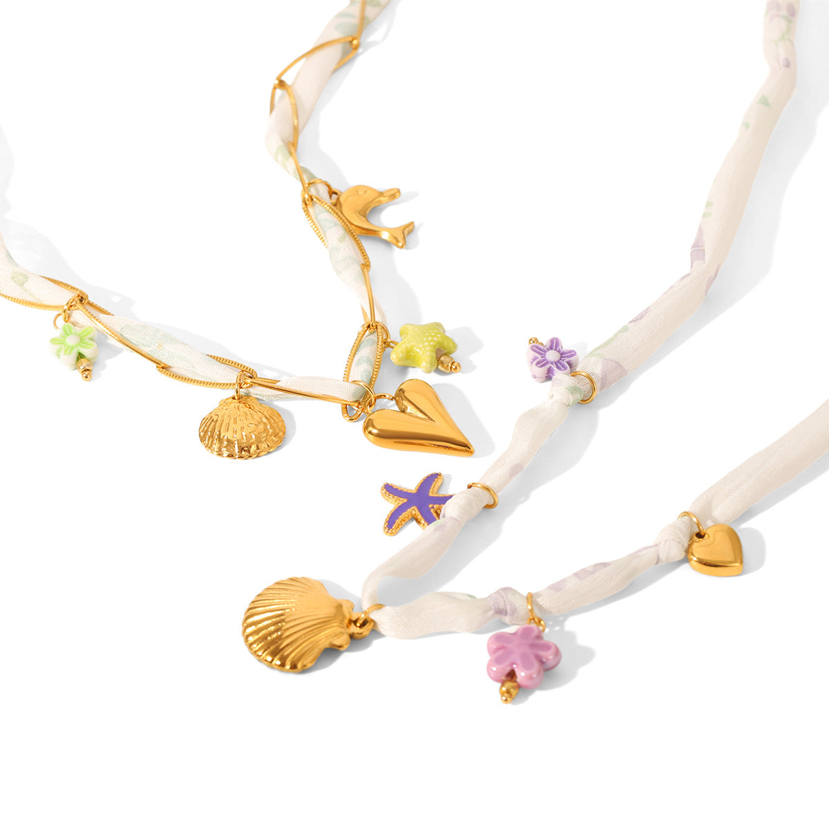 Summer Vacation Style Scarf Necklace, Light Luxury Niche Stainless Steel Shell Heart Pendant Necklace Jewelry