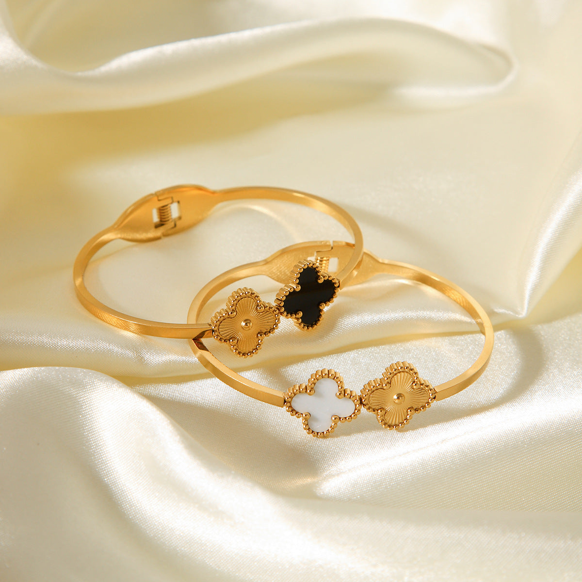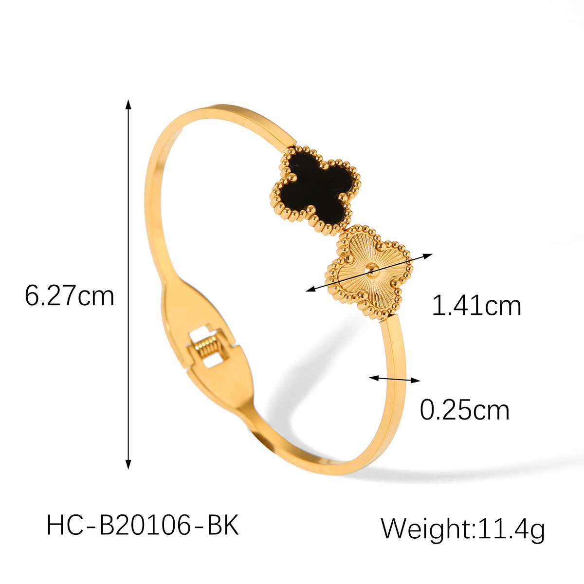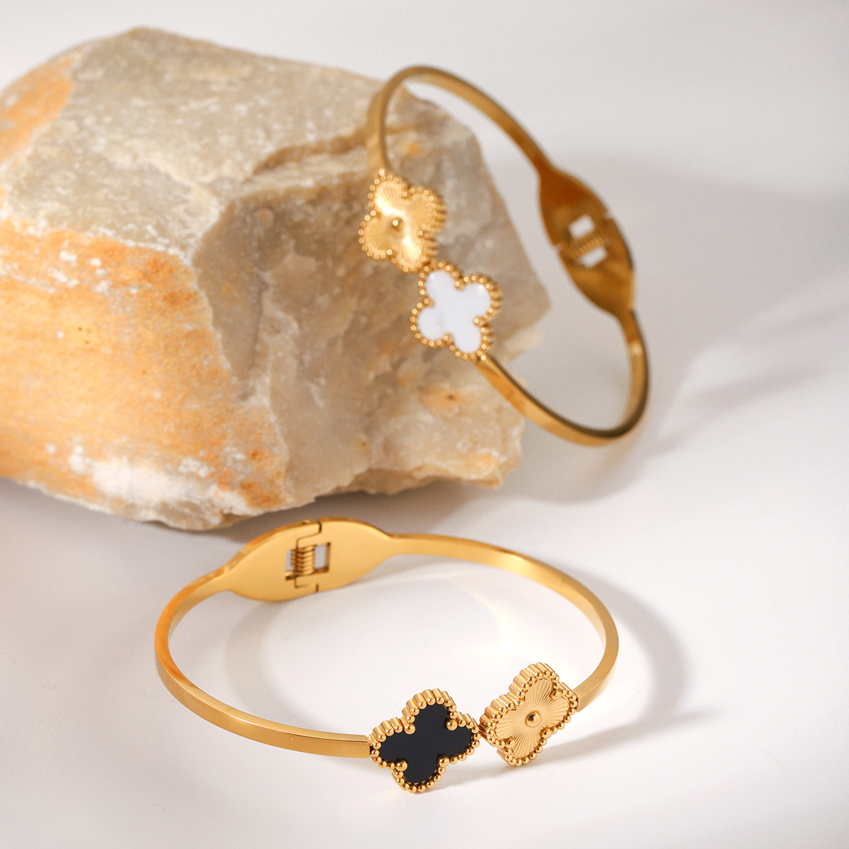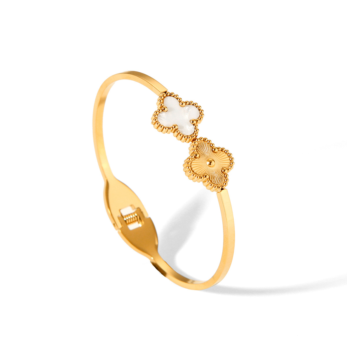 Titanium Steel Four Leaf Clover Spring Open Bracelet, Fashionable and Versatile, Inlaid with Mother of Pearl Bracelet, Stainless Steel Bracelet Decoration