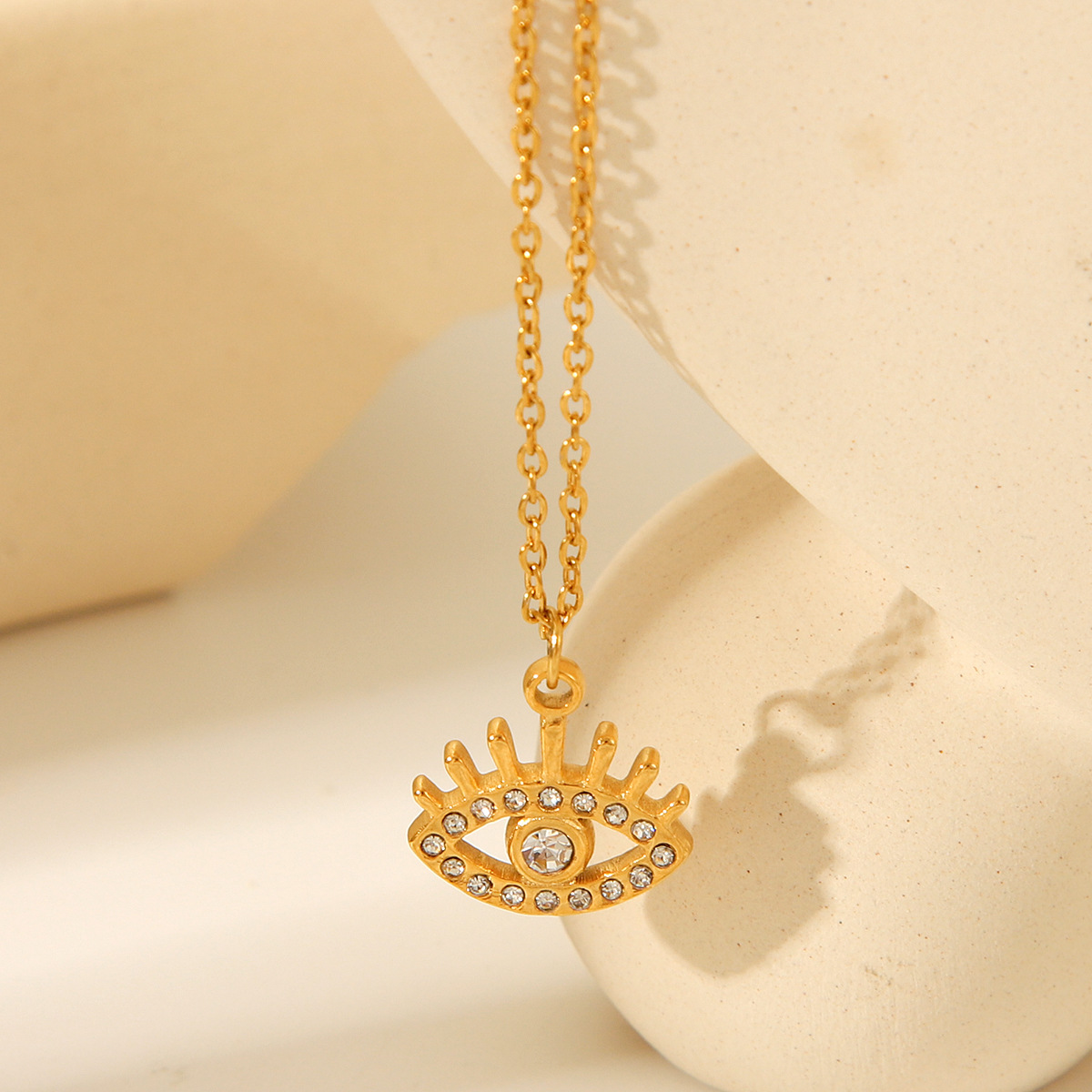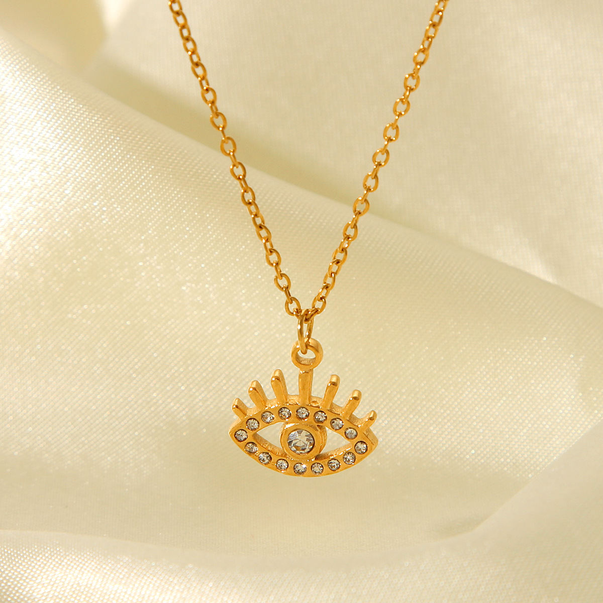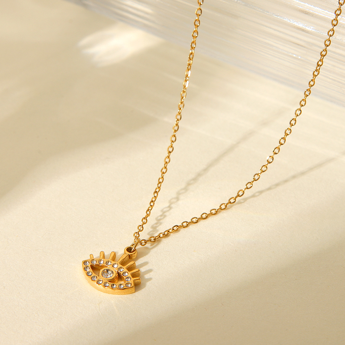 Titanium Steel Non-fading Necklace 18K Gold Stainless Steel Diamond-encrusted Demon's Eye Pendant Necklace Jewelry
