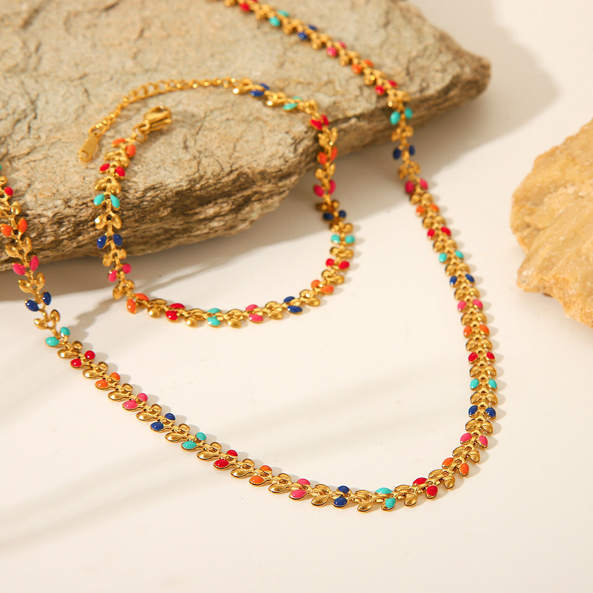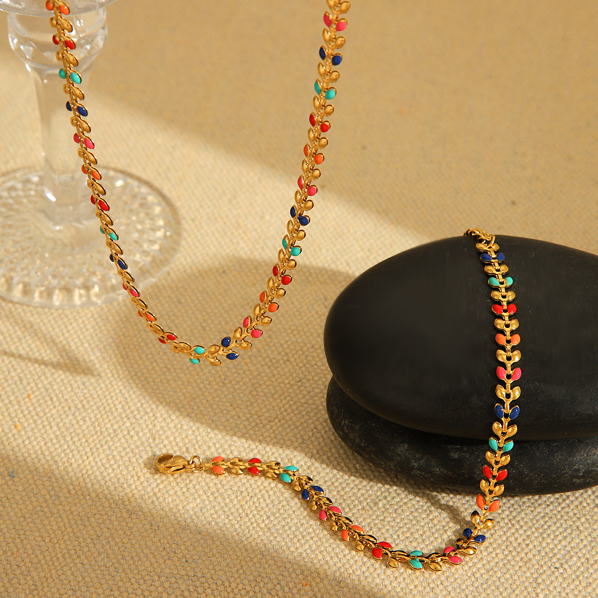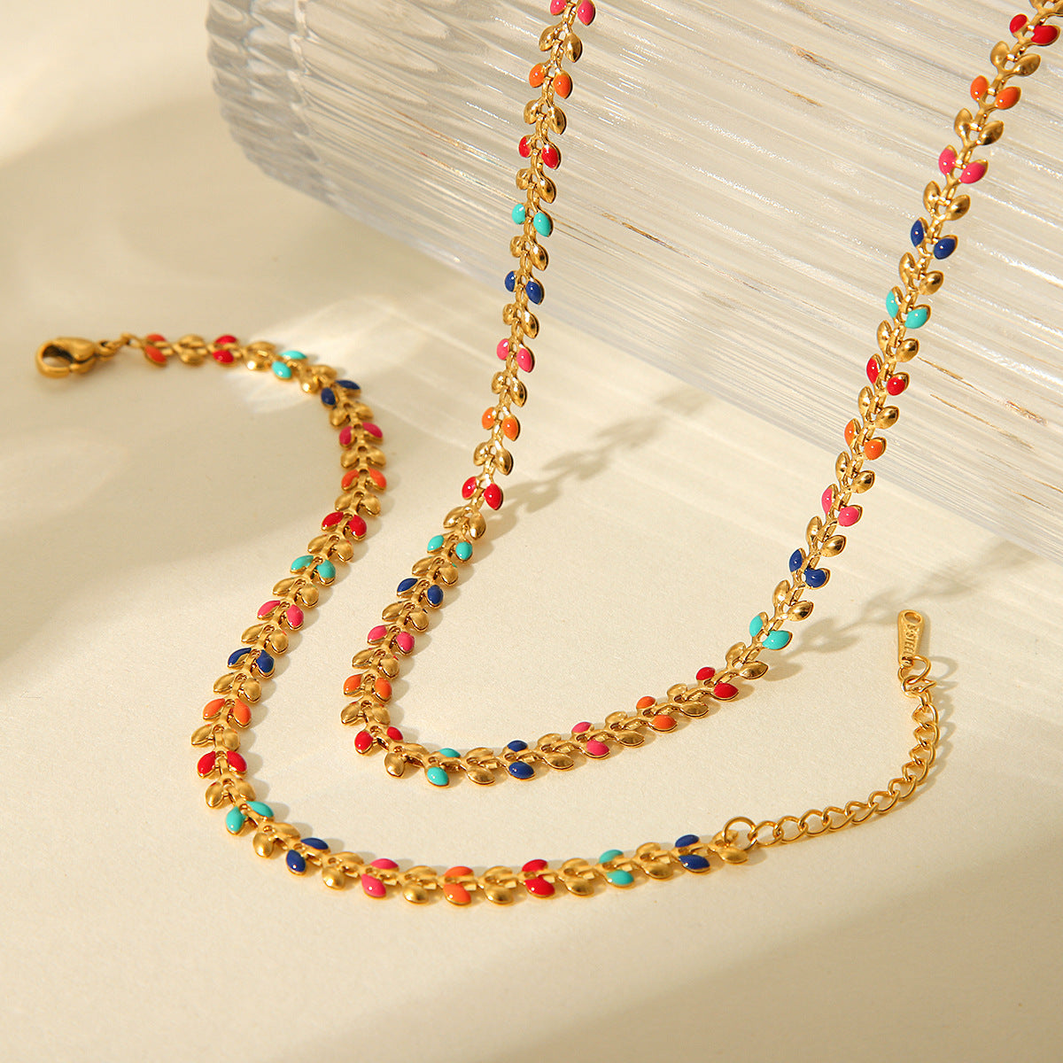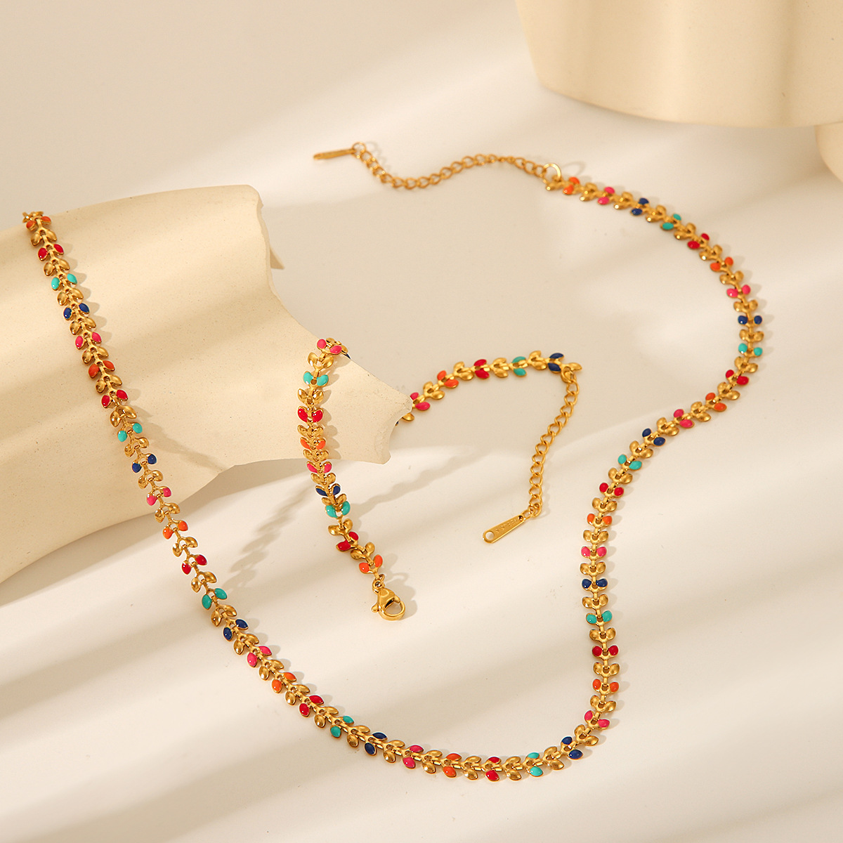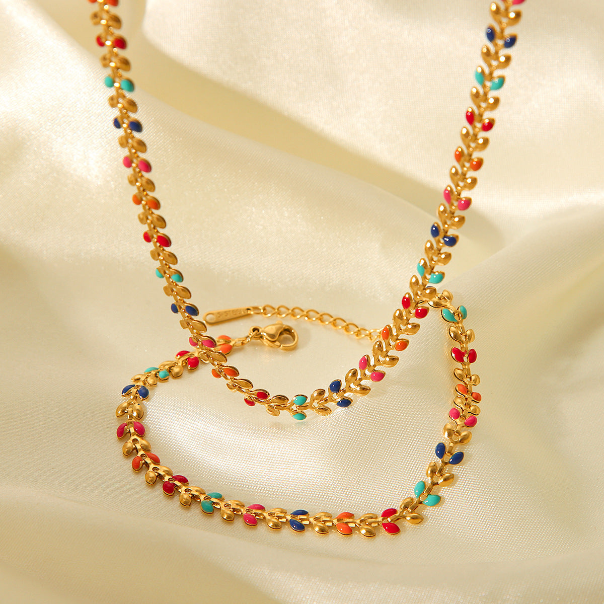 Women's Stainless Steel Leaf Drop Necklace, Niche Necklace, Fashionable and Versatile Titanium Steel Olive Leaf Bracelet